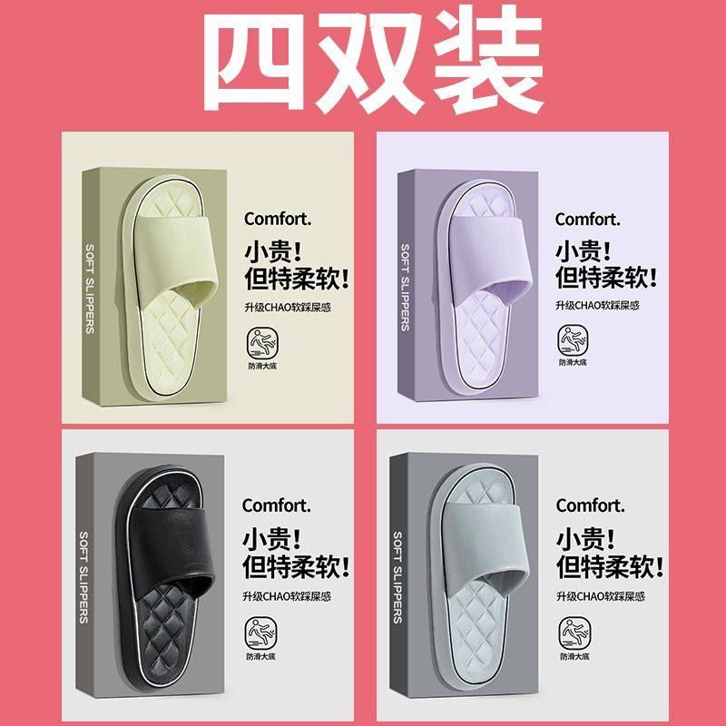 凉拖鞋女家用4双装家居待客酒店浴室洗澡防滑静音室内情侣拖鞋男