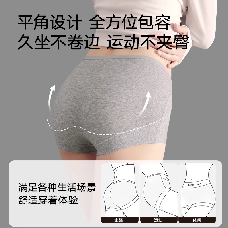 内裤女纯棉少女生无痕高腰收腹平角四角打底安全裤短裤头全棉抗菌
