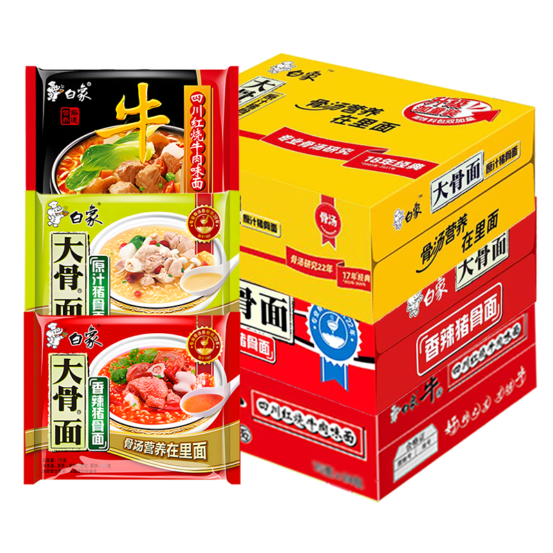 白象方便面大骨面原汁猪骨面香辣红烧牛肉免煮泡面速食整箱袋装
