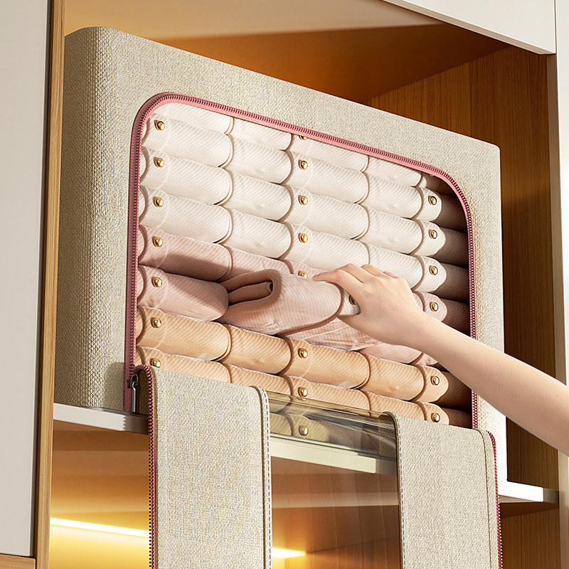 天山棉麻收纳筐衣柜收纳整理分层神器PP板可水洗衣服储物盒收纳箱