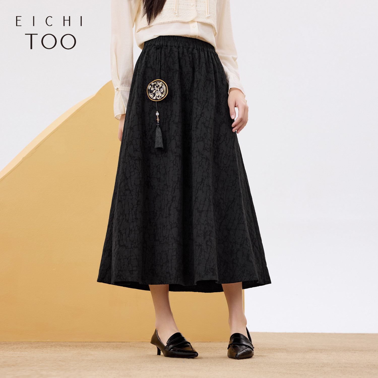 爱居兔半身裙女春秋新款苏绣百花图卷联名时尚肌理感包臀裙