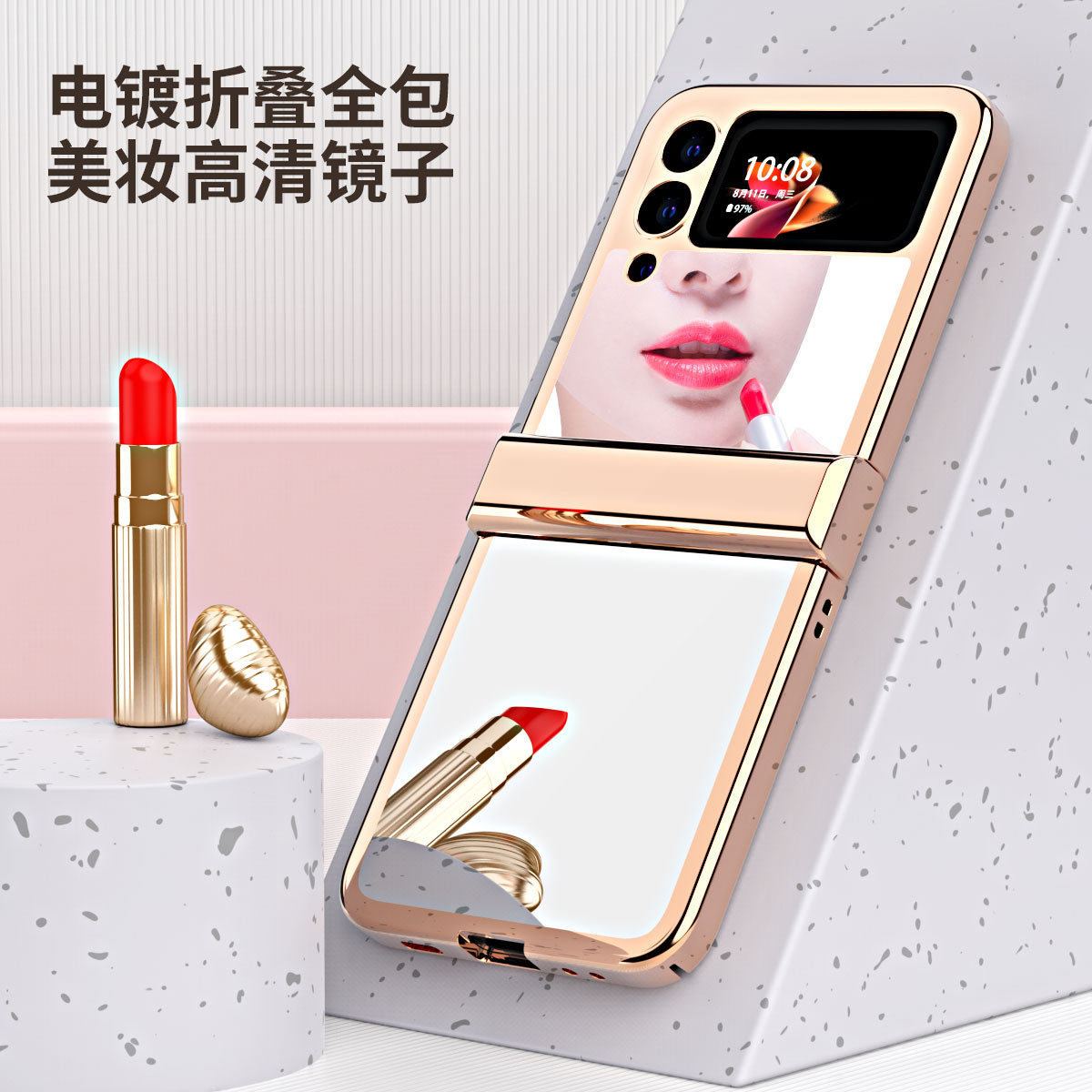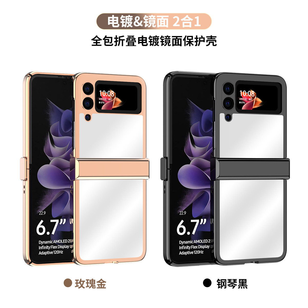 适用三星Z Flip3钢化玻璃电镀化妆镜手机套折叠屏美妆时尚保护套