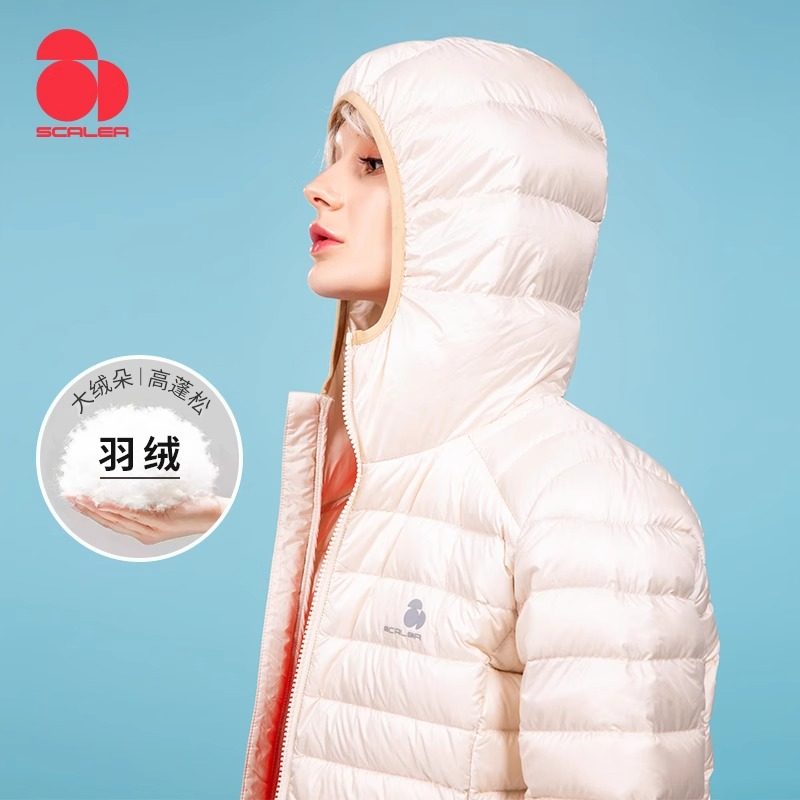 SCALER思凯乐户外羽绒服女连帽短款秋冬季新款轻薄防风保暖羽绒衣