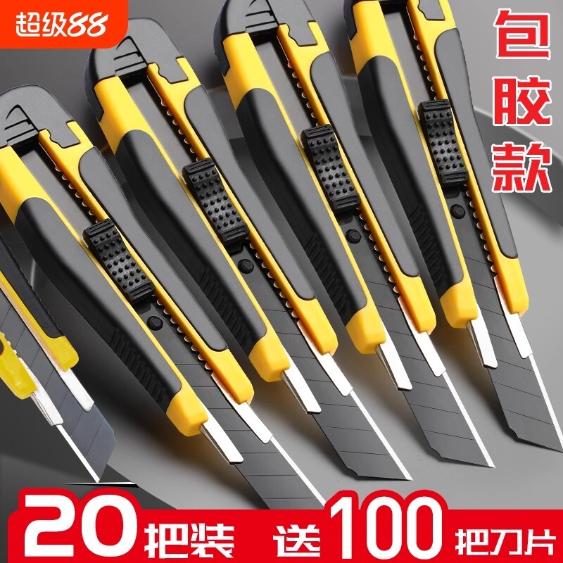 包胶美工刀壁纸刀黑刃刀片大号拆快递开箱裁纸用加厚高碳钢多功能包胶黑刃美工刀拆快递开箱