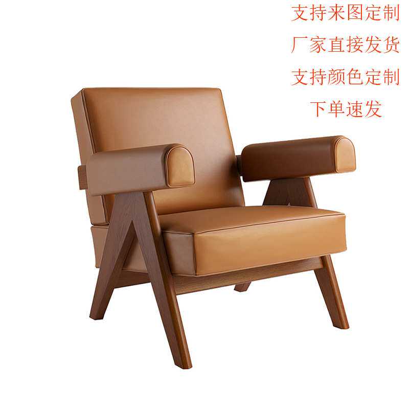 复古实木单人沙发椅昌迪加尔侘寂风家具休闲双艺布艺扶手沙发