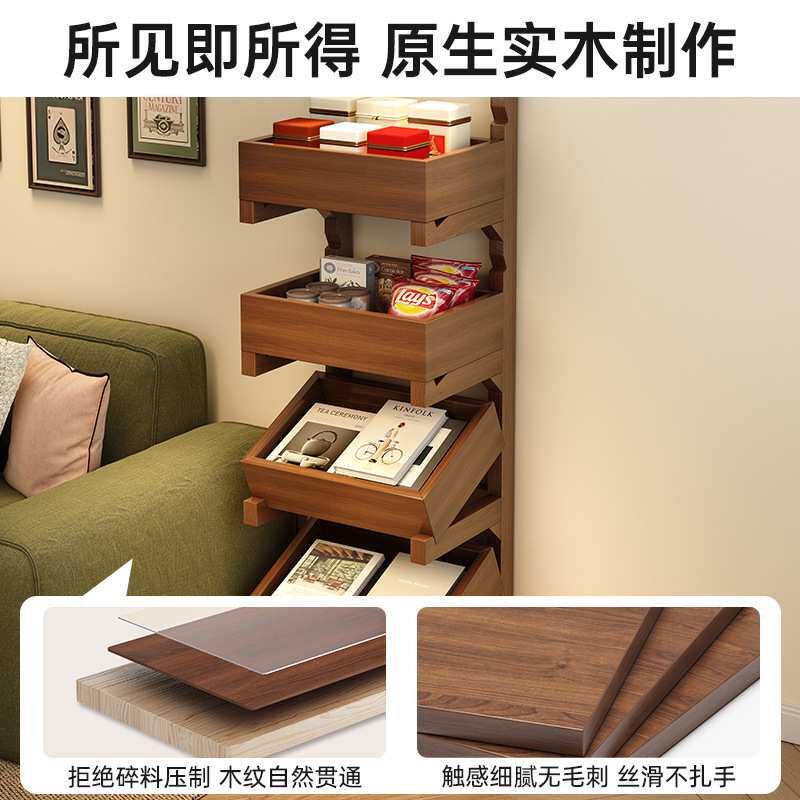 沙发窄边架蔬果架置物架客厅家用零食小推车实木可移动小型收纳架