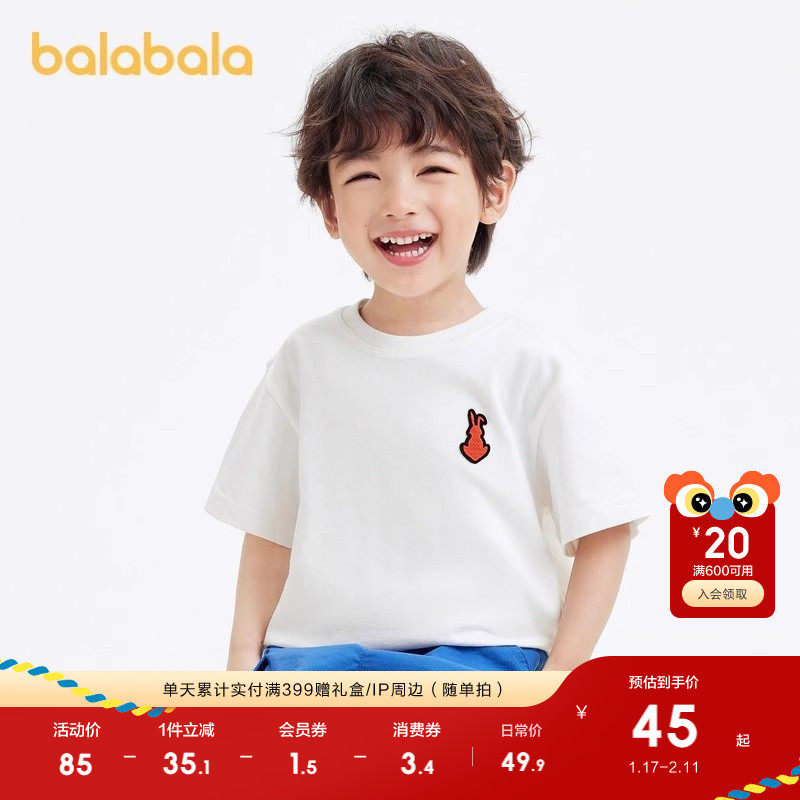 巴拉巴拉童装儿童短袖t恤男童春夏装2025纯棉刺绣上衣T恤亲子装潮