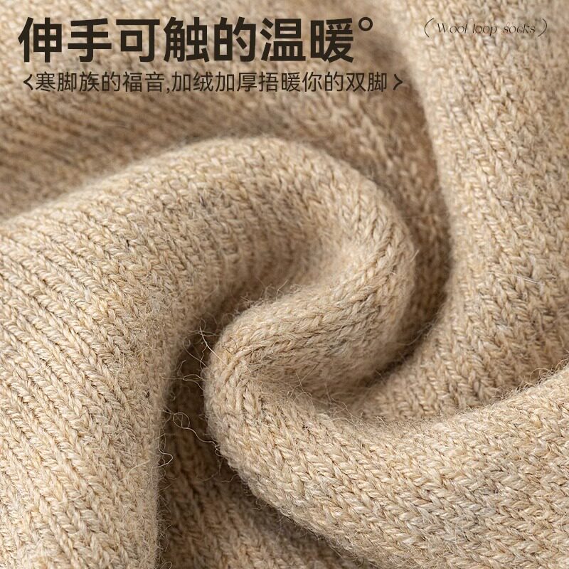 羊毛袜子女中筒秋冬加厚加绒保暖睡眠月子长袜冬天超厚雪地长筒袜