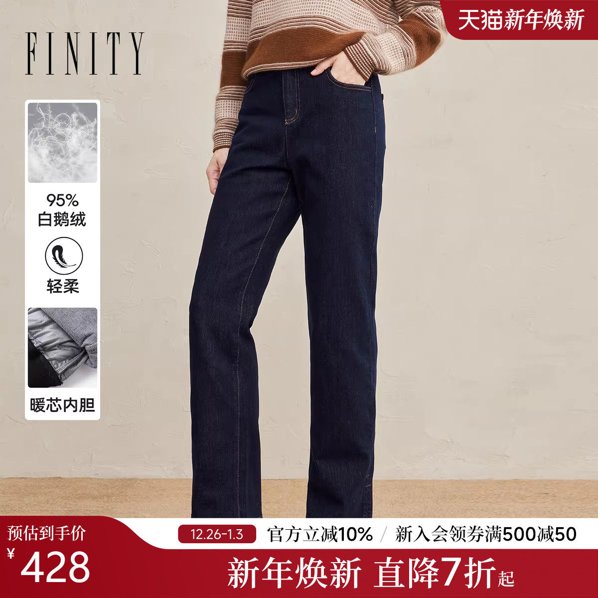 FINITY菲妮迪白鹅绒牛仔裤2025年冬季新款棉质直筒百搭垂感长裤女