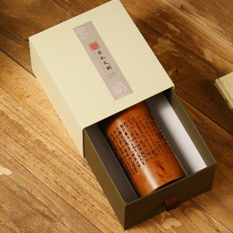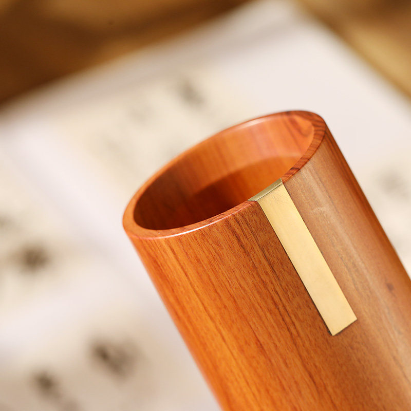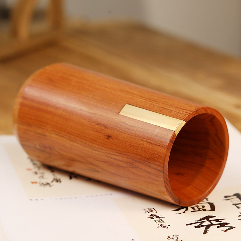 定制刻字实木毛笔笔筒办公室桌面收纳摆件中式办公用品高级学生笔桶创意伴手礼送领导纪念品学校企业新年礼物