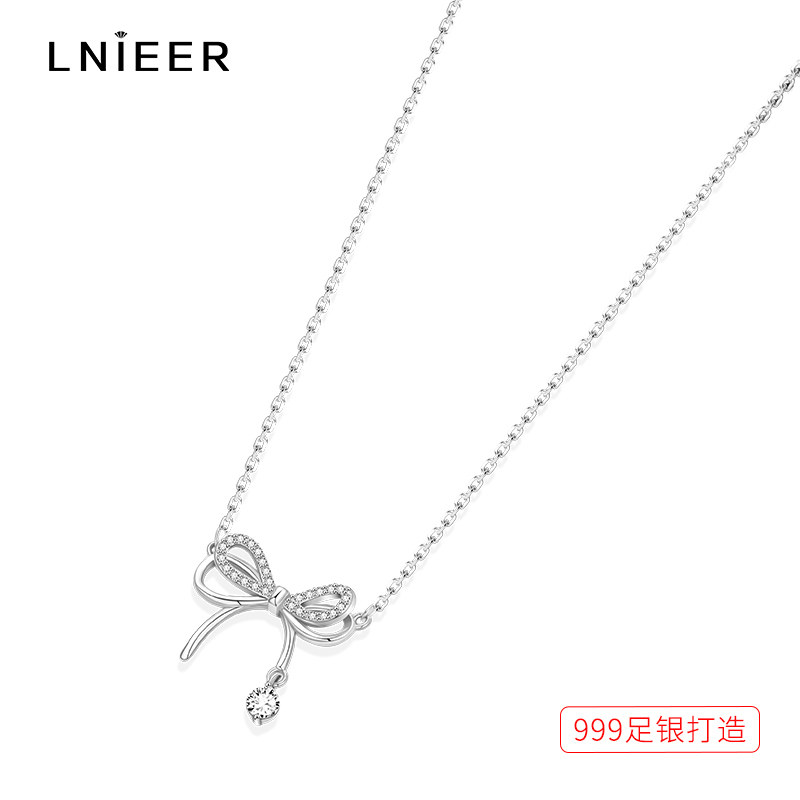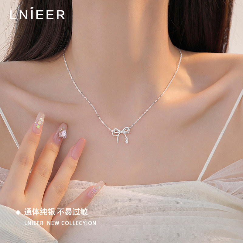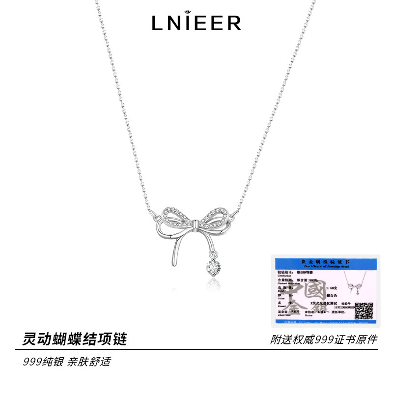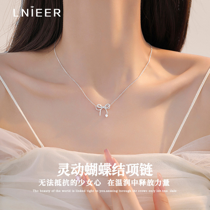 S999纯银蝶梦蝴蝶结项链女款轻奢精致高级感锁骨链生日礼物送女友