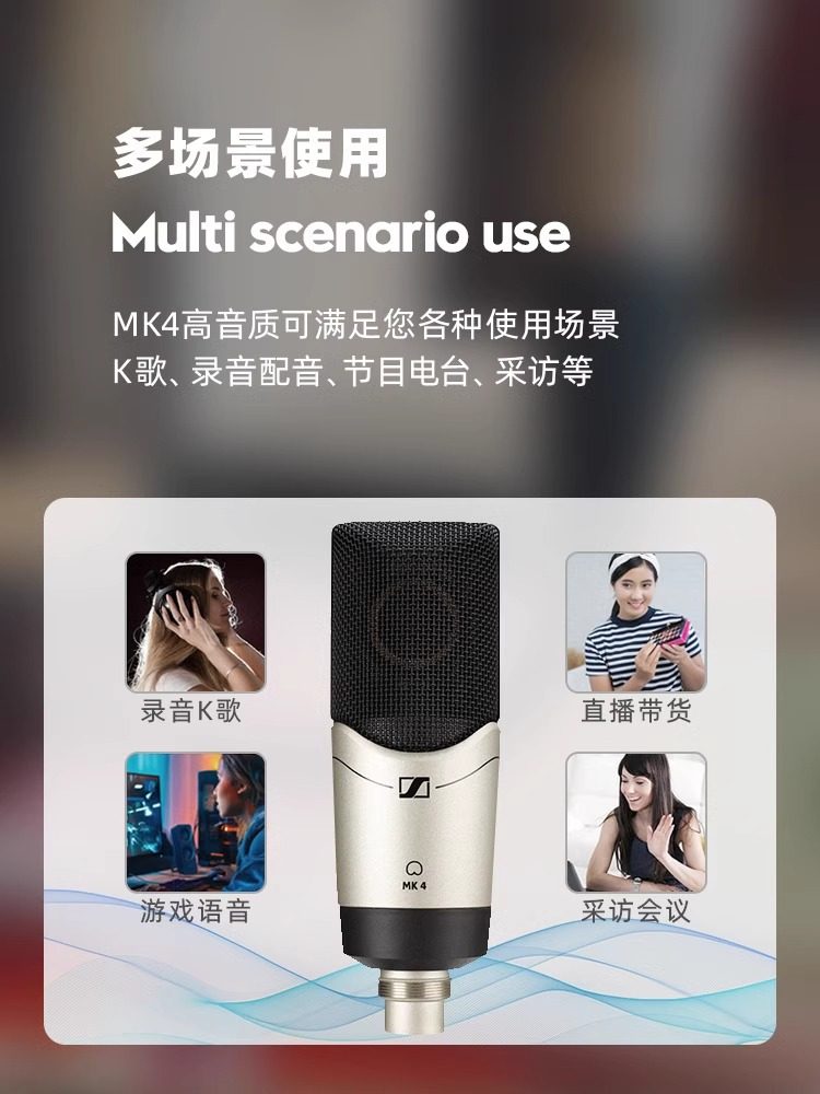 SENNHEISER/森海塞尔 MK4专业录音棚K歌直播录音电容麦克风话筒