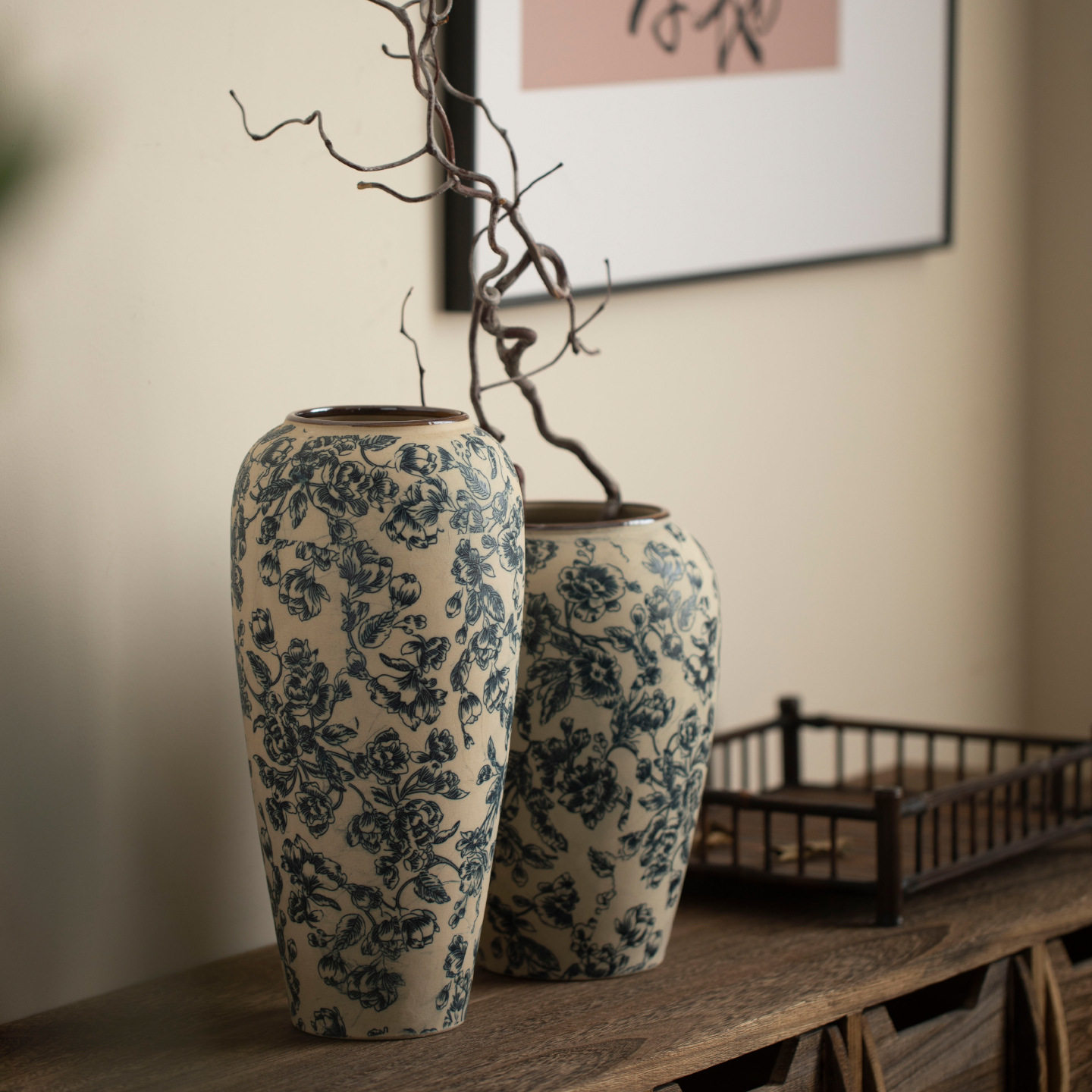 景德镇新中式陶瓷花瓶贴花牡丹花器高级轻奢陶罐酒店民宿装饰品