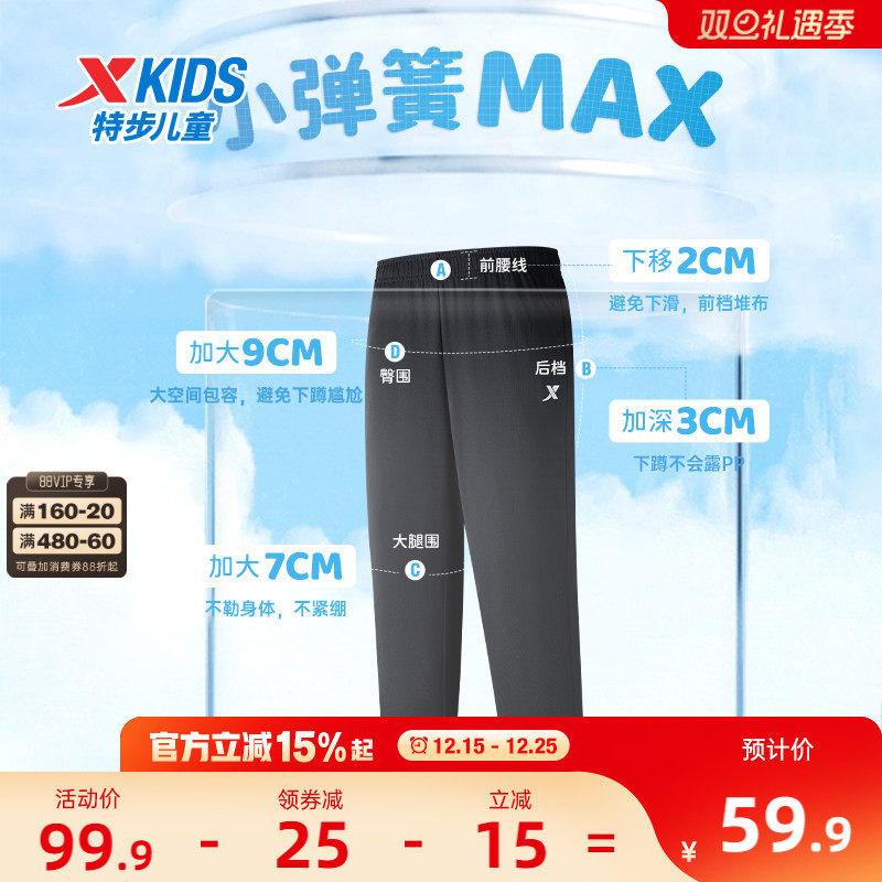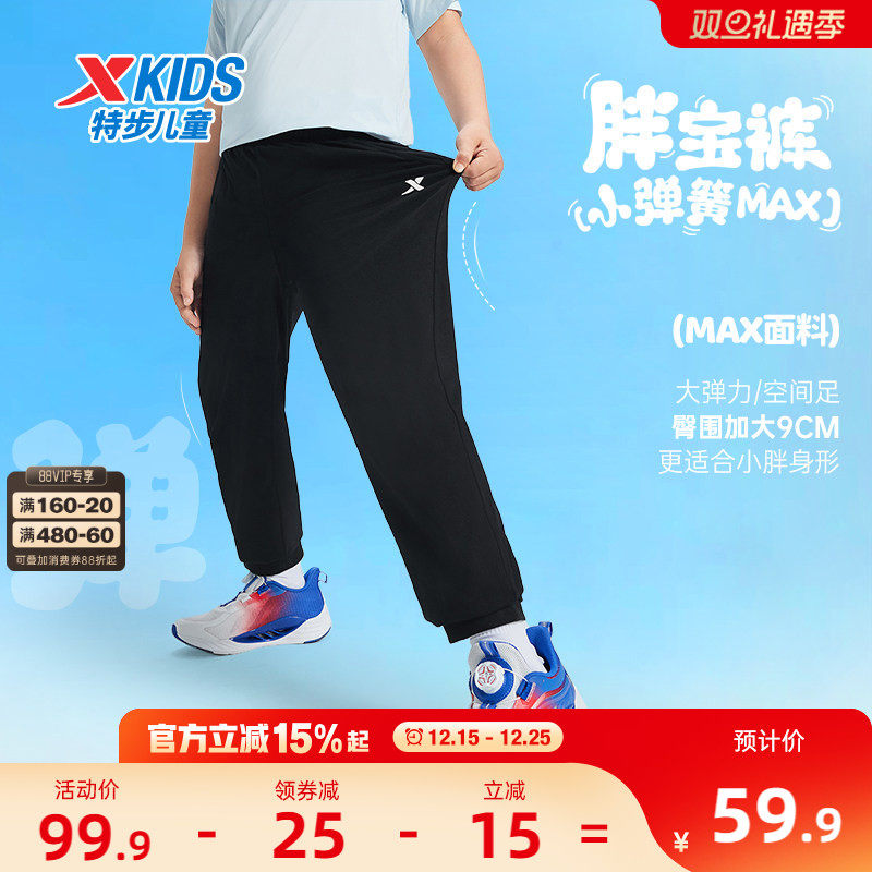 胖宝裤|特步童装男童宽松运动裤夏季新款儿童长裤大童加大裤子薄