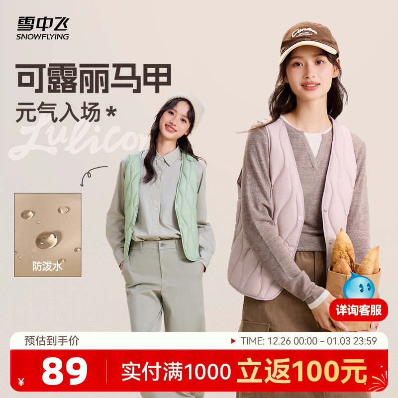雪中飞2025秋季新款女士V领羽绒背心马甲可露丽紫色保暖叠穿轻薄A
