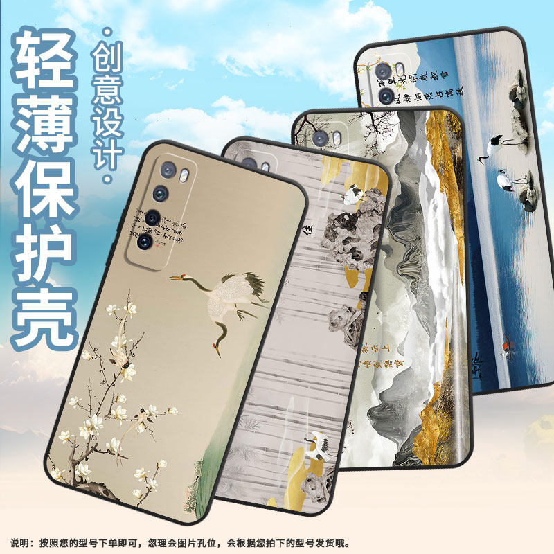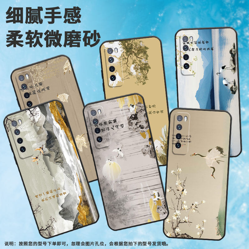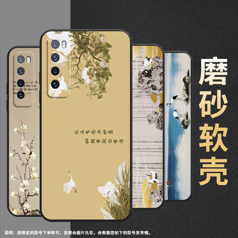 适用华为nova青春版手机壳nova2/nova2plus/nova4新款nova6飞鹤nova7软壳nova2s水墨花鸟nova5创意nova3个性