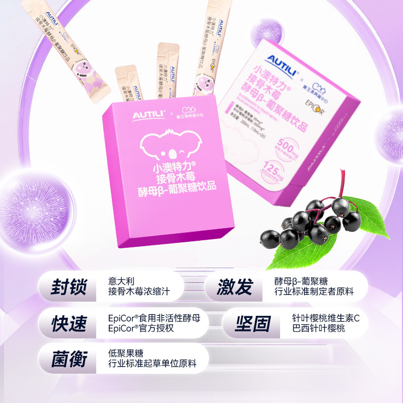 崔玉涛亲研澳特力接骨木莓酵母β葡聚糖饮液维生素C儿童营养品