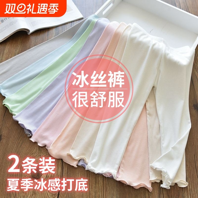 女童夏季薄款打底裤冰丝儿童花边裤子冰感外穿防蚊裤女孩连袜裤宝