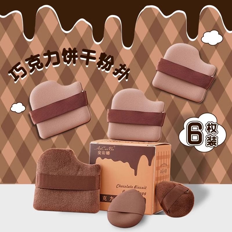 【6枚装】巧克力饼干粉扑气垫超软不吃粉服帖干湿两用定妆散粉扑