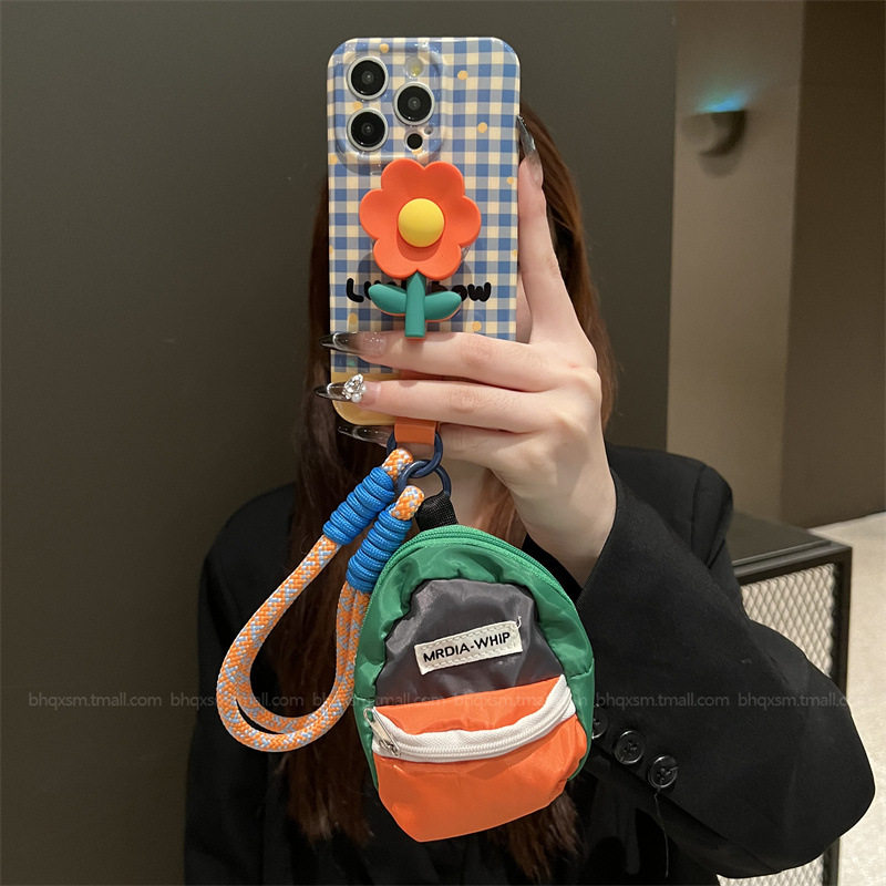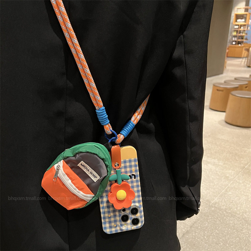 苹果华为手机壳带挂件彩虹油画学院风小包适用苹果15promaxiPhone14pro高级感13promax斜挎小众夏日保护套女