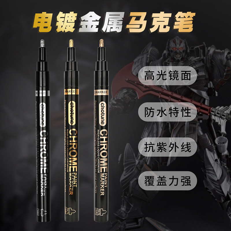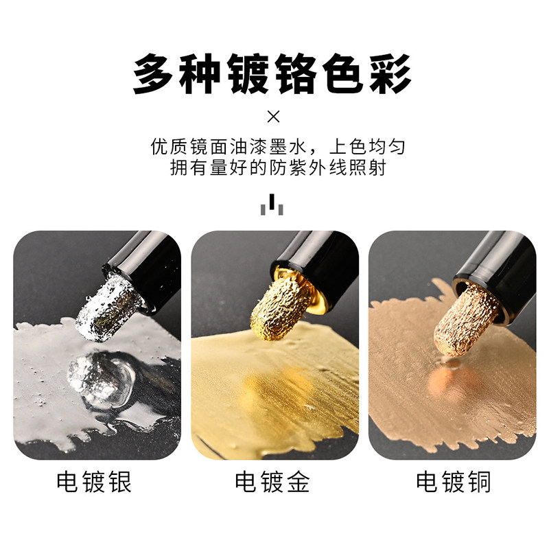 电镀汽车镀铬金银铜色油漆笔高达模型镜面金属高光防水补漆马克笔