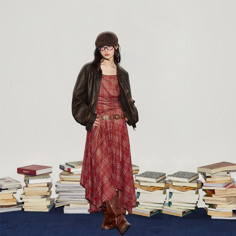 BOBBYBECKY原创复古格纹吊带连衣裙重工大裙摆显瘦女装衣服