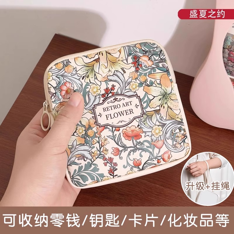 梵高油画随身零钱包耳机数据线收纳小包口红袋大容量便携月事包女