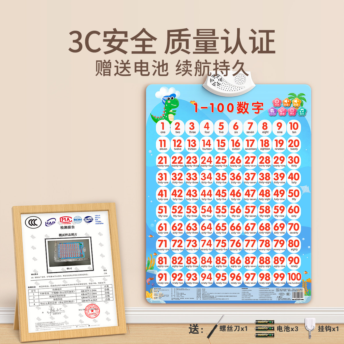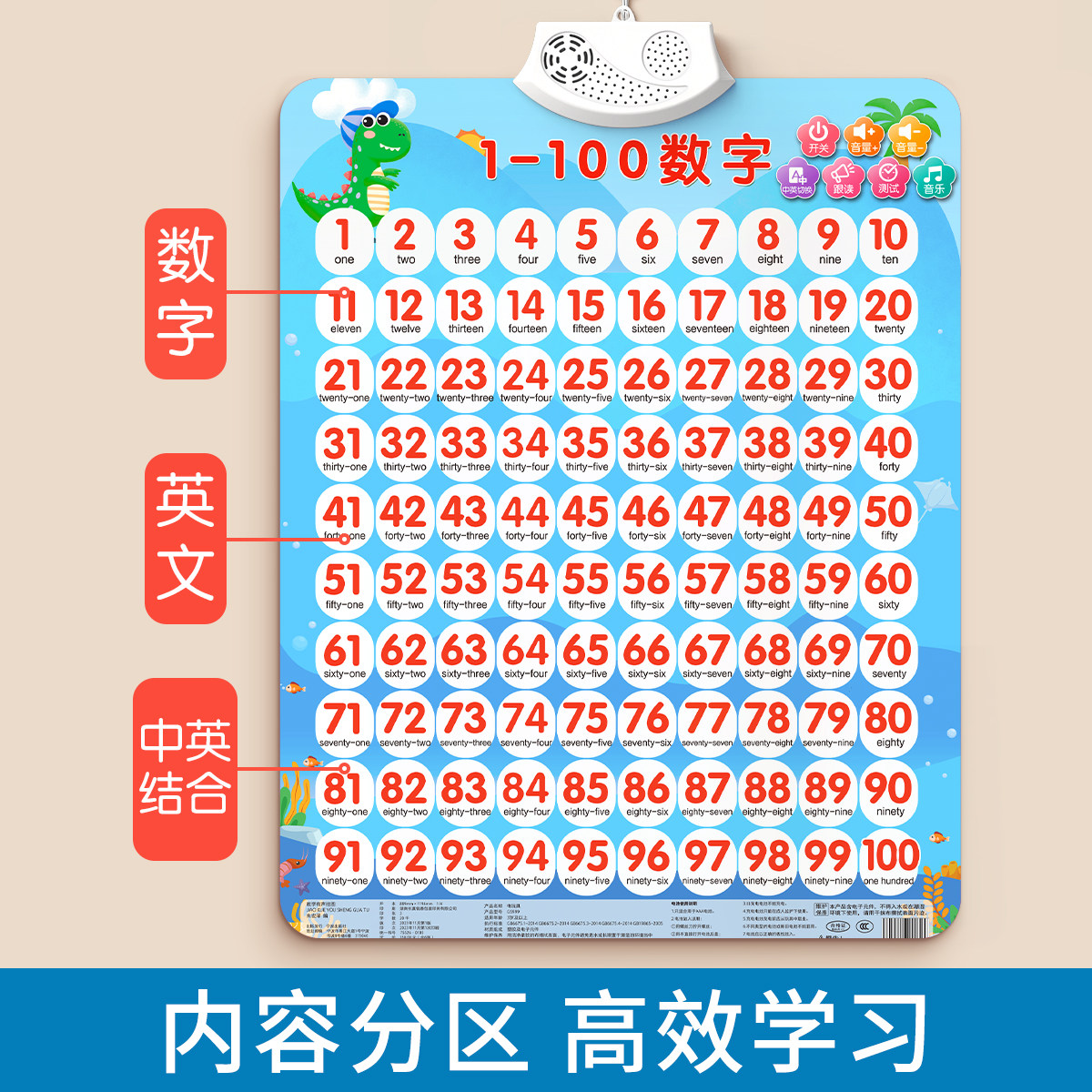 儿童数字挂图有声认知1到100早教幼儿识字宝宝拼音卡片音标汉语