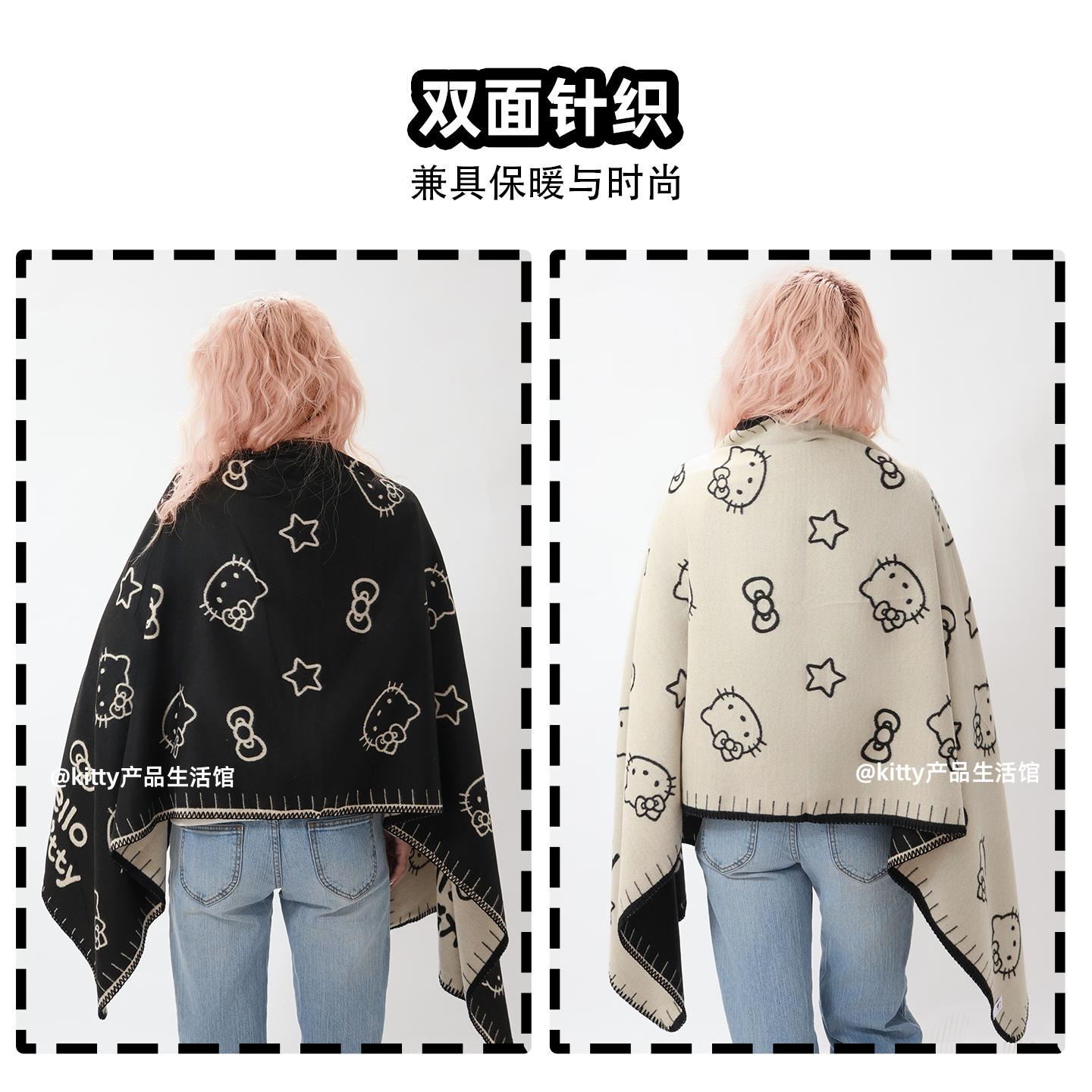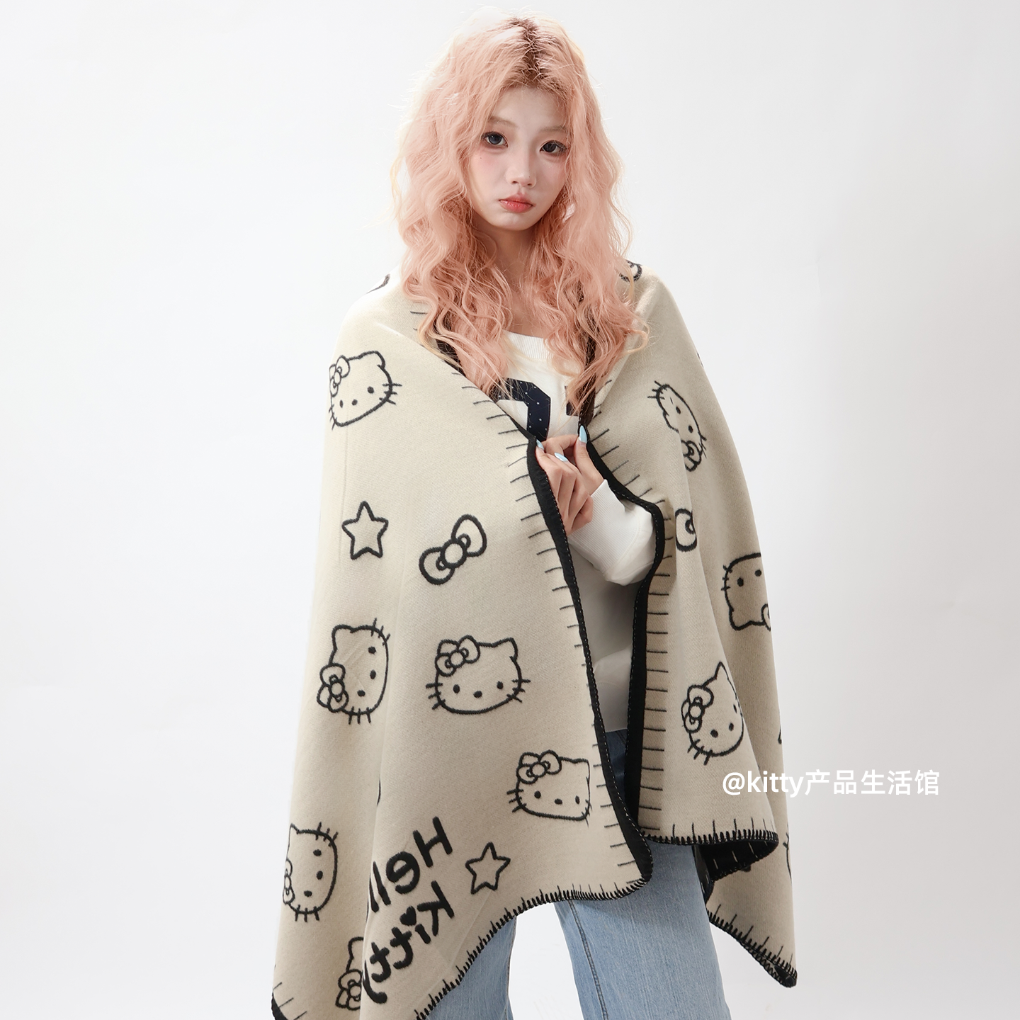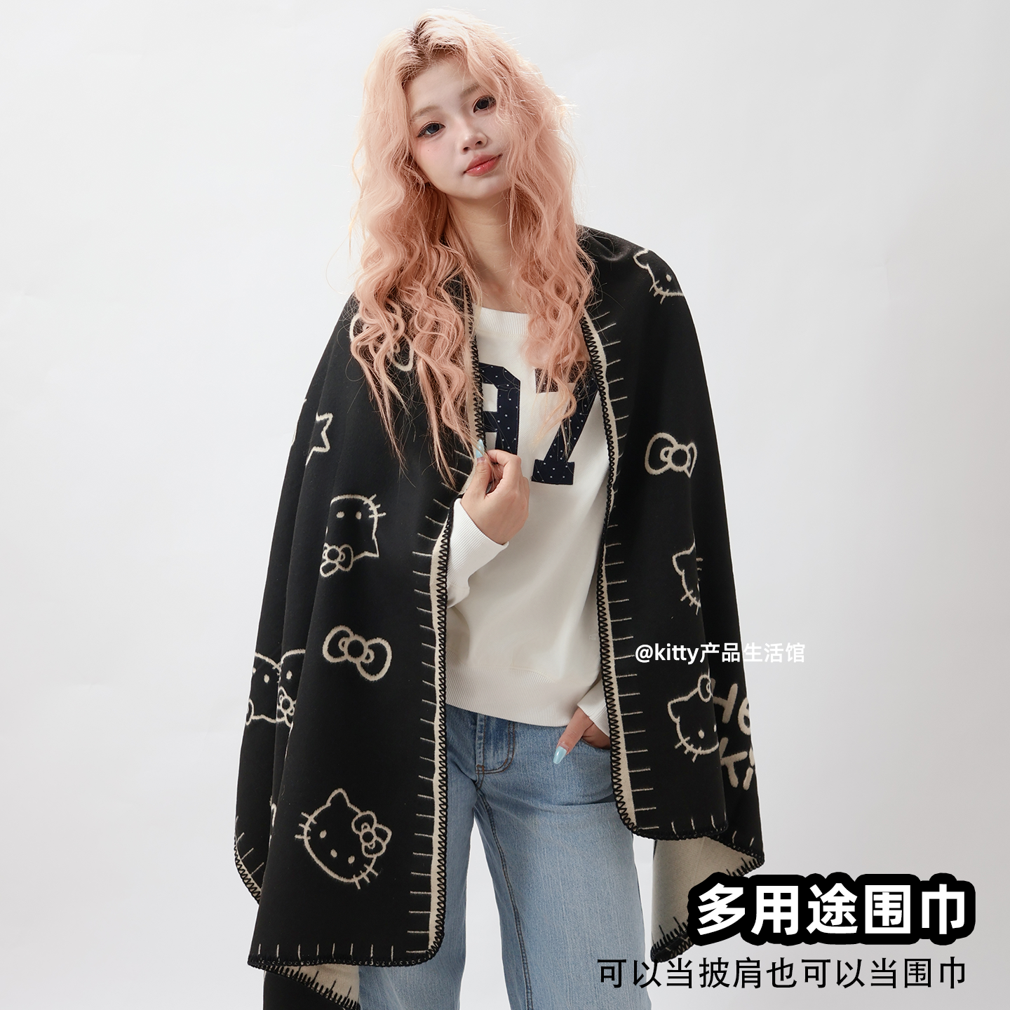 三丽鸥正版凯蒂猫KT双面围巾披肩围巾可爱少女心保暖围脖围巾两用