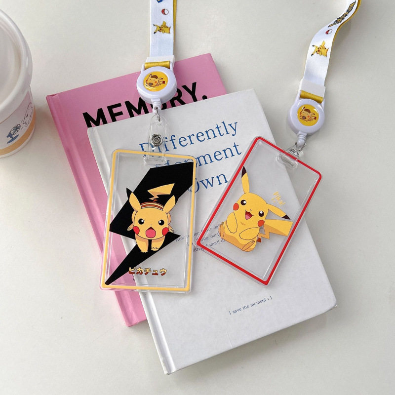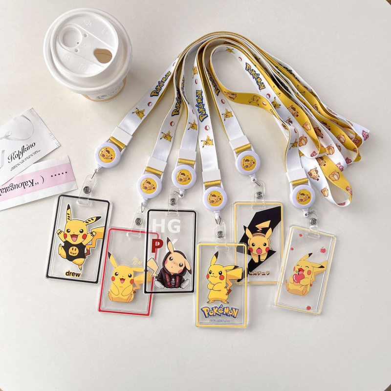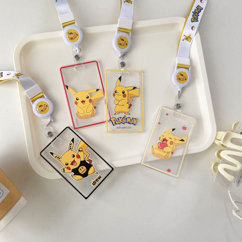 卡套伸缩长绳c系皮卡丘卡通可爱ins风时尚高级感校园卡饭卡保护套带挂绳校牌工厂牌钥匙扣卡套一体