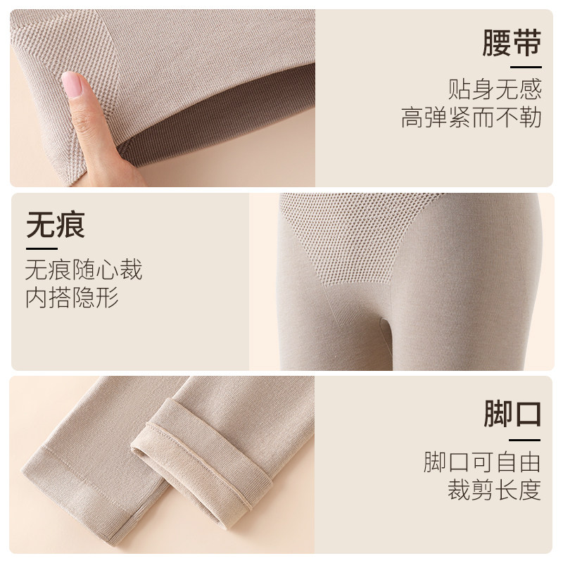 羊毛蚕丝秋裤女加厚加绒德无痕发热高腰保暖裤女羊毛棉裤打底裤冬