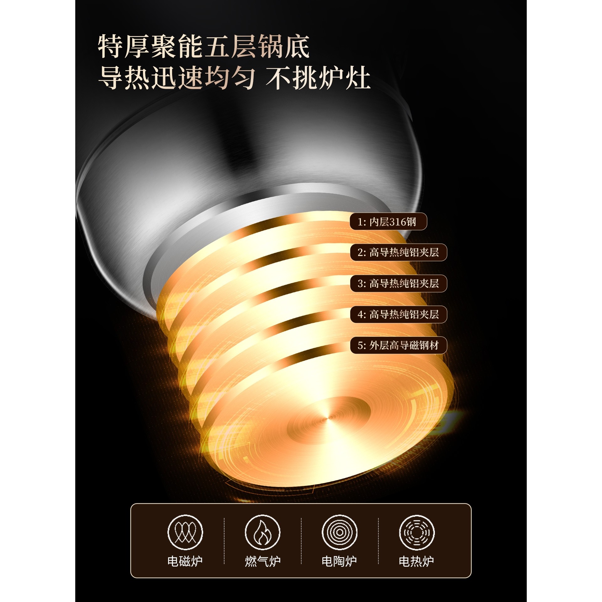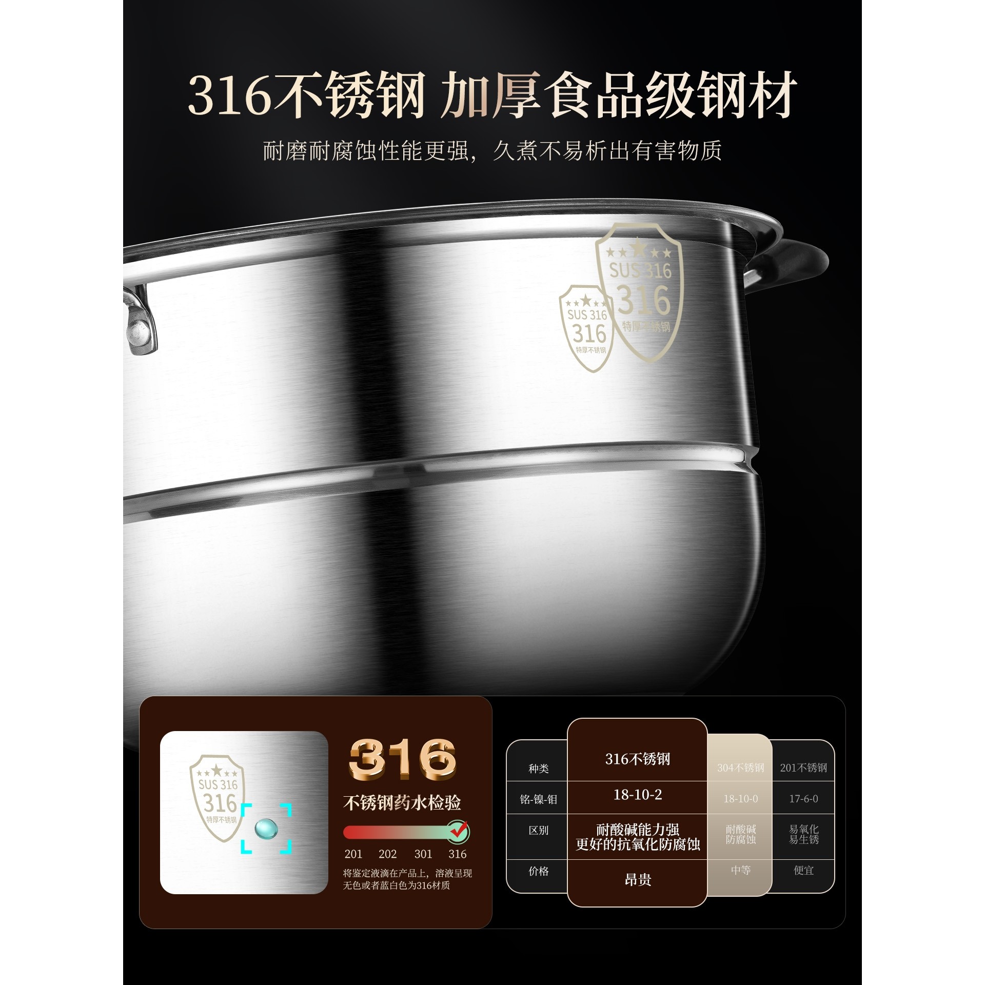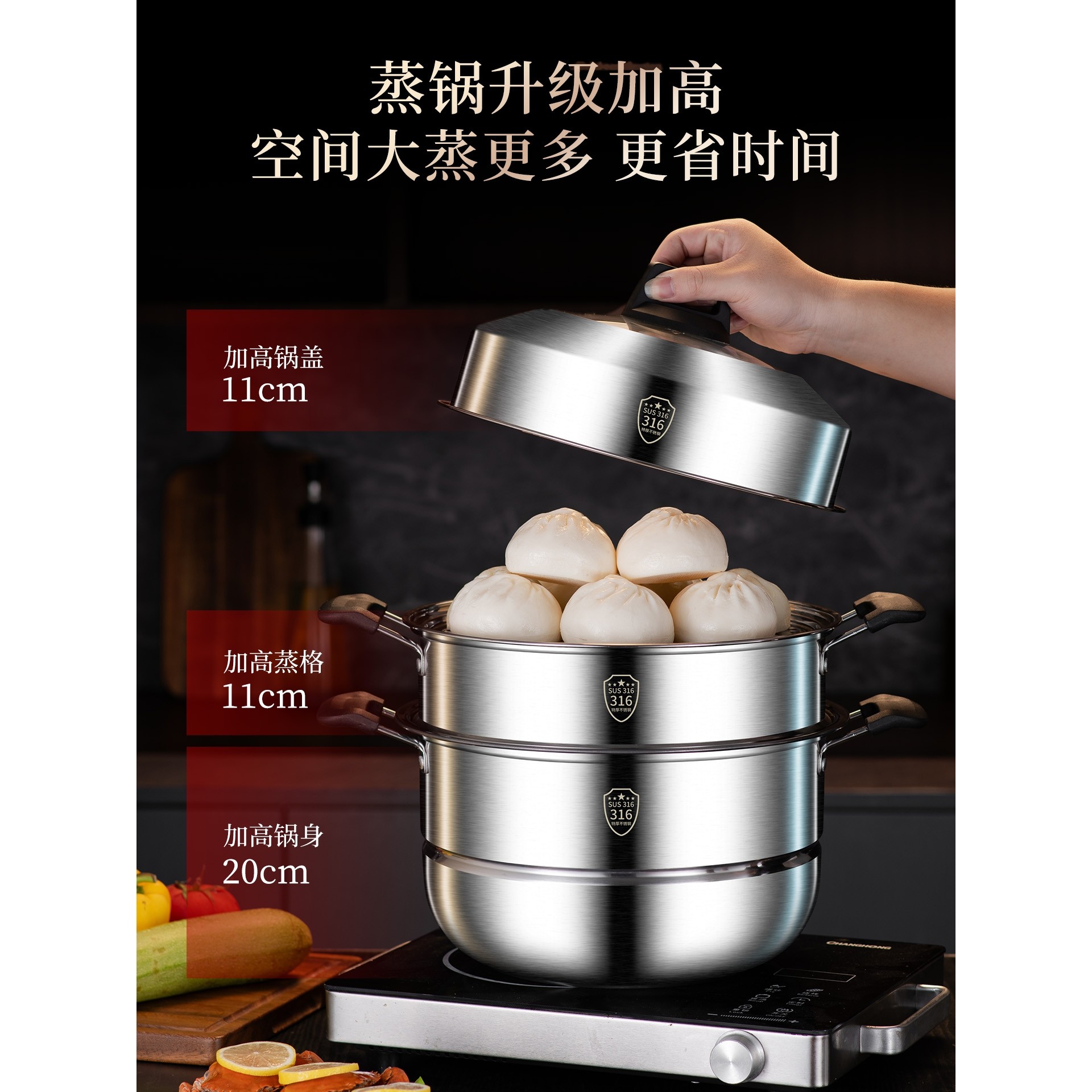 九阳316不锈钢蒸锅加厚家用304蒸笼屉三多层大容量蒸煮炖电磁炉多
