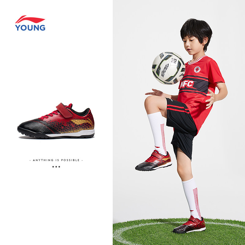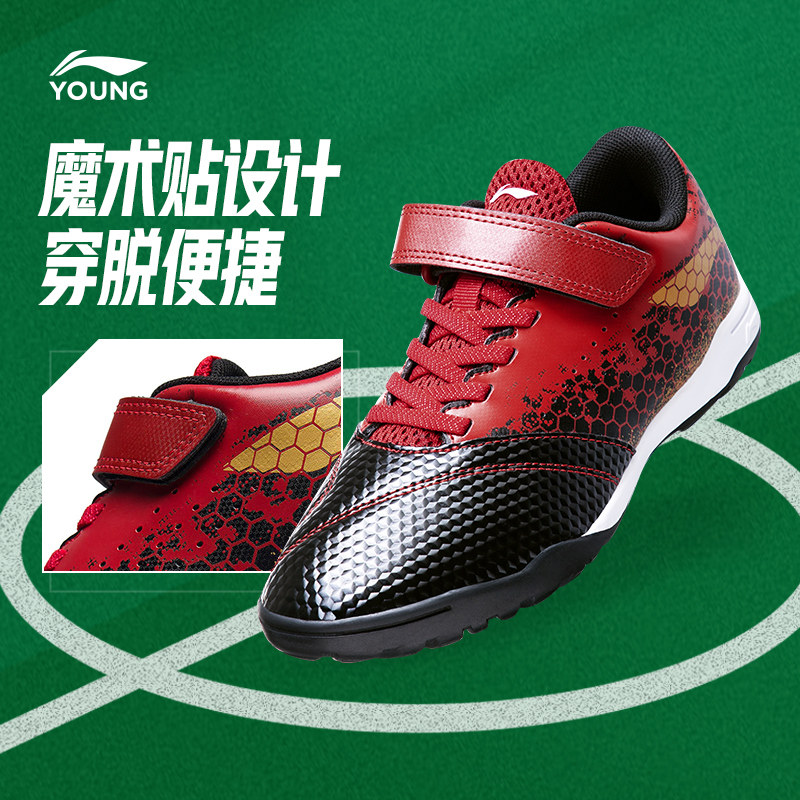 李宁儿童小学生专用比赛训练专业碎钉足球鞋小学生男童鞋YKGT010