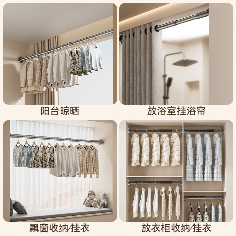 免打孔伸缩杆承重晾衣杆衣架阳台飘窗帘挂杆浴帘杆子门帘衣柜撑杆