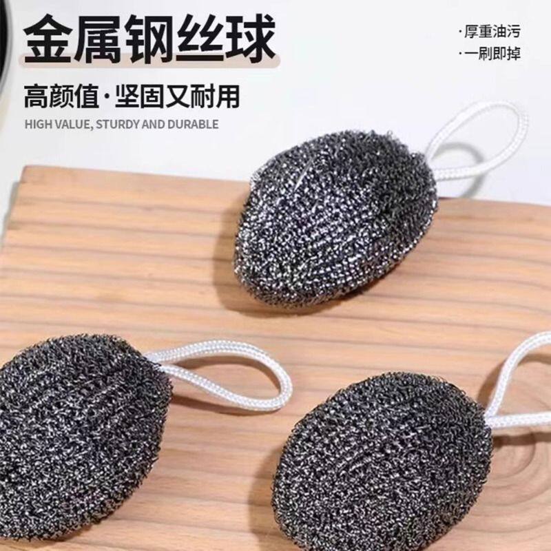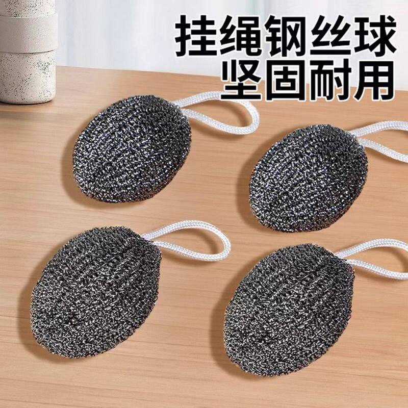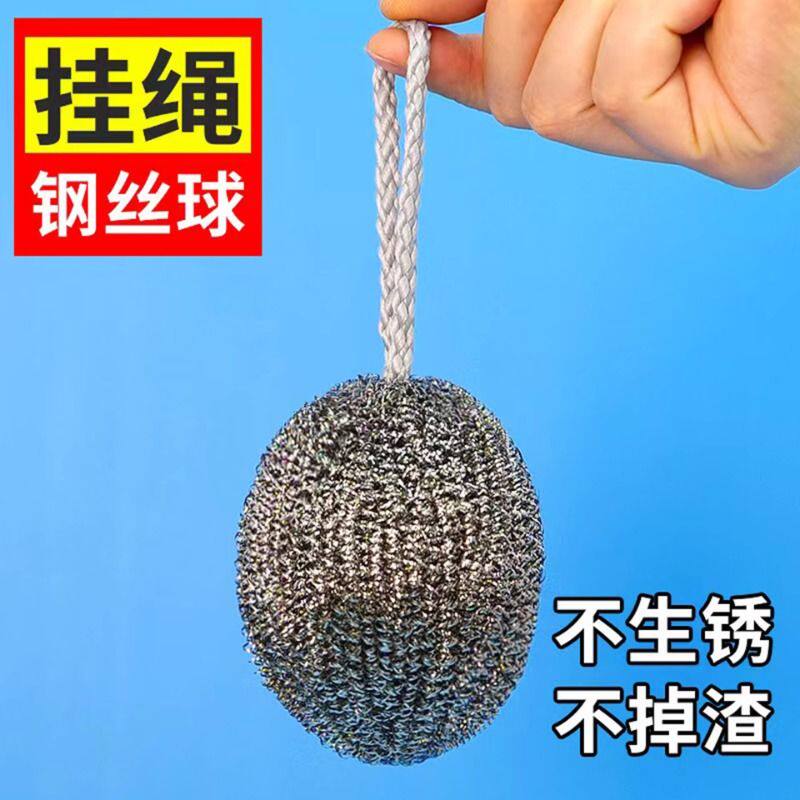 加密挂绳钢丝球带不锈钢洗碗清洁球大号铁丝油污神器厨房橄榄钢丝