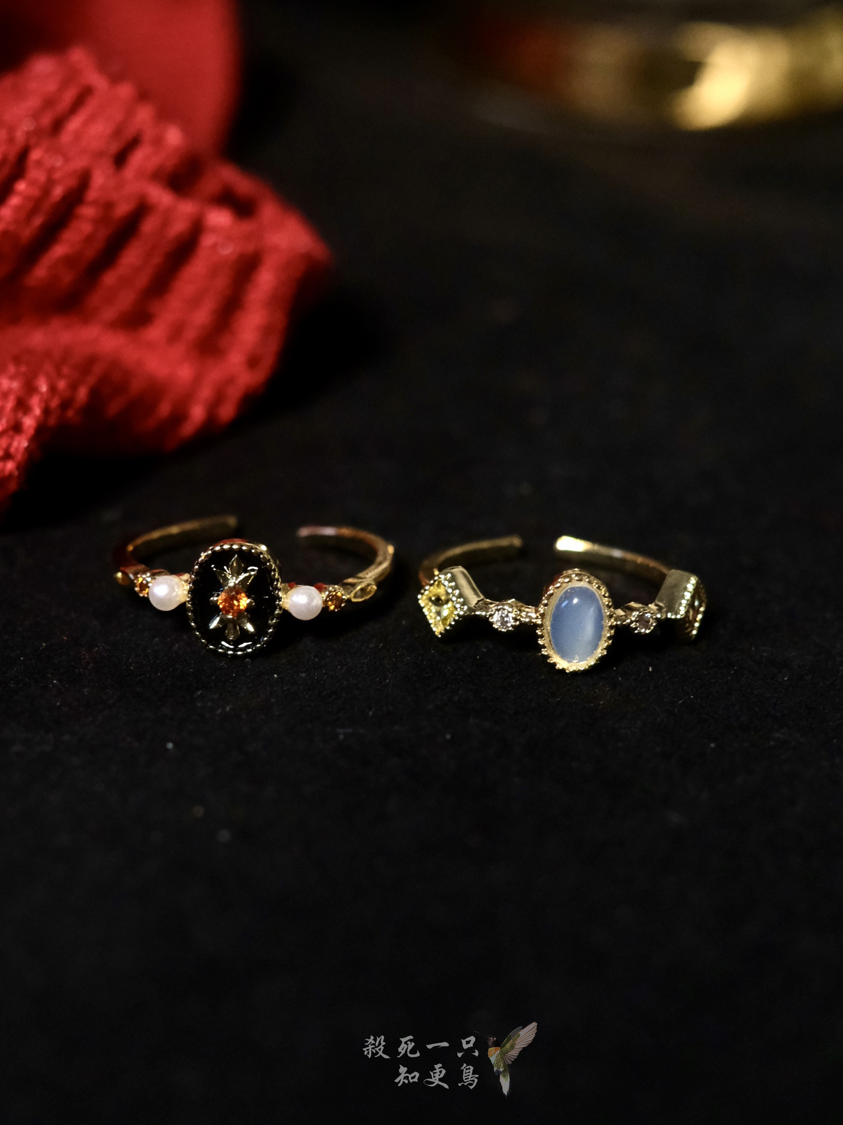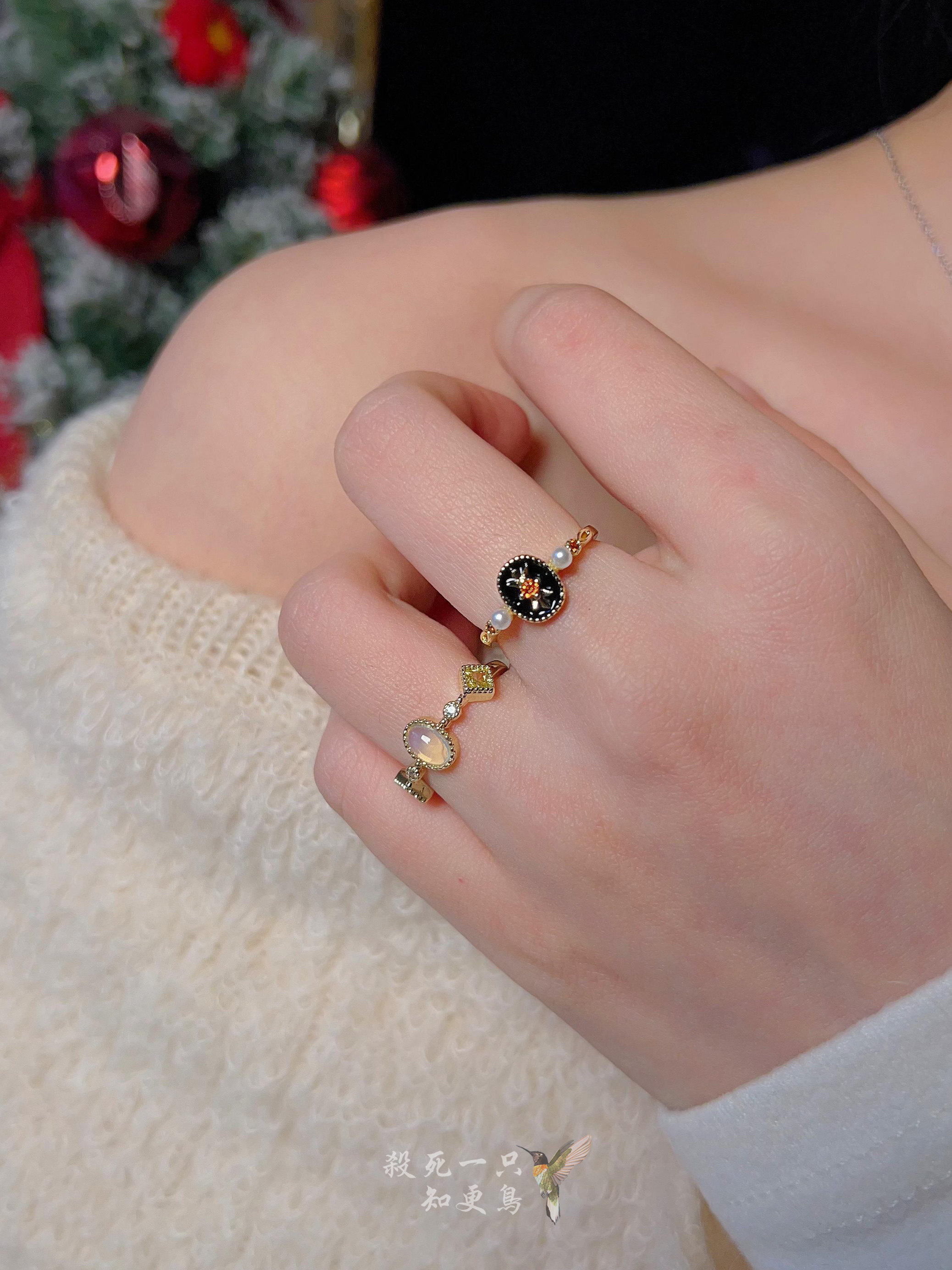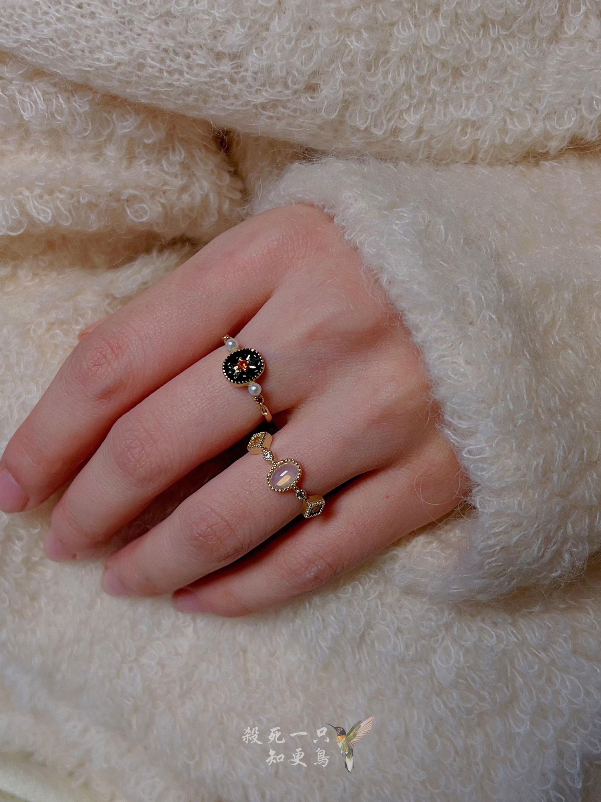 《卢浮宫》复古法式宫廷风小众高级感玉髓珍珠精致开口百搭戒指女