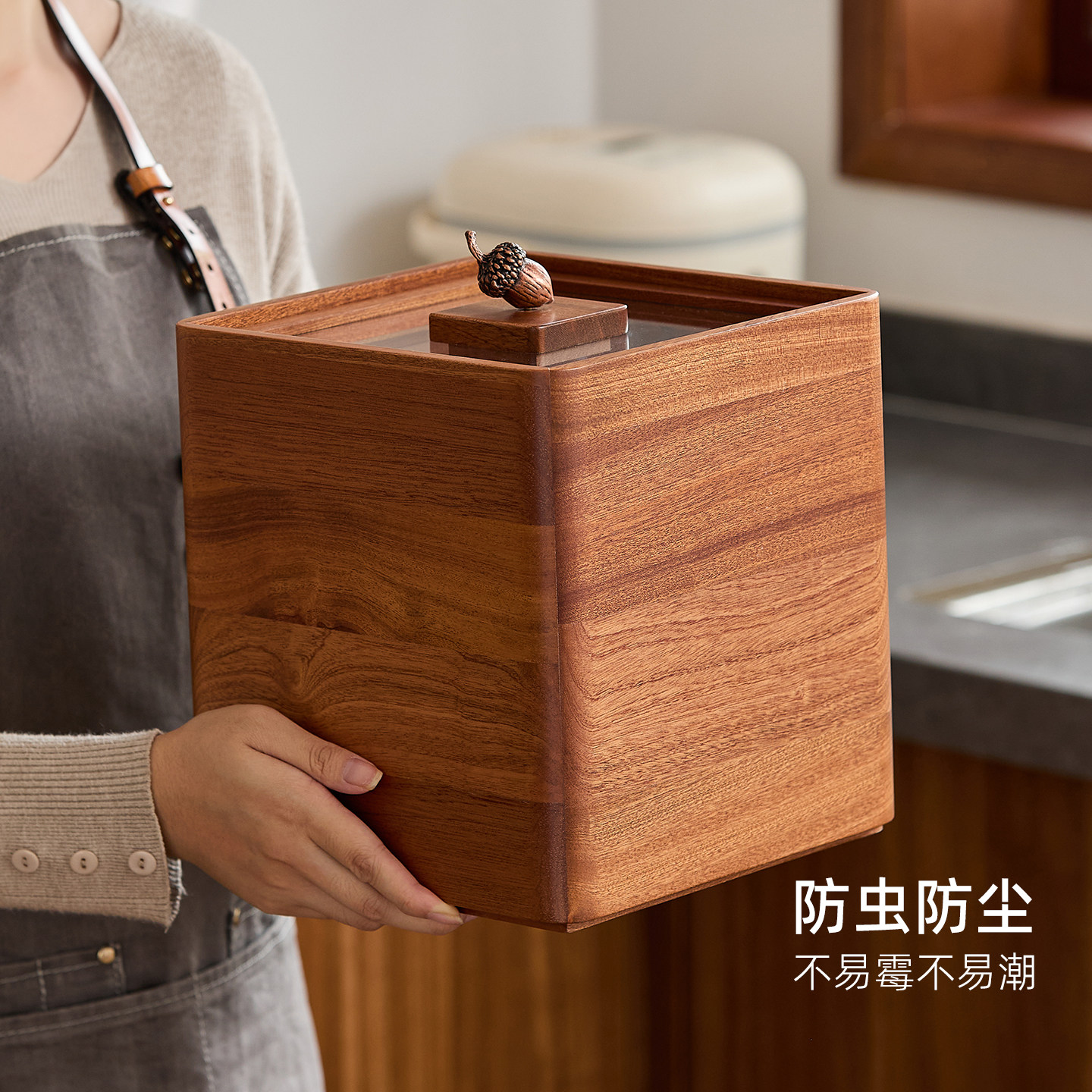 实木米桶密封家用2025新款防虫防潮橱柜米缸五谷杂粮收纳盒储米箱