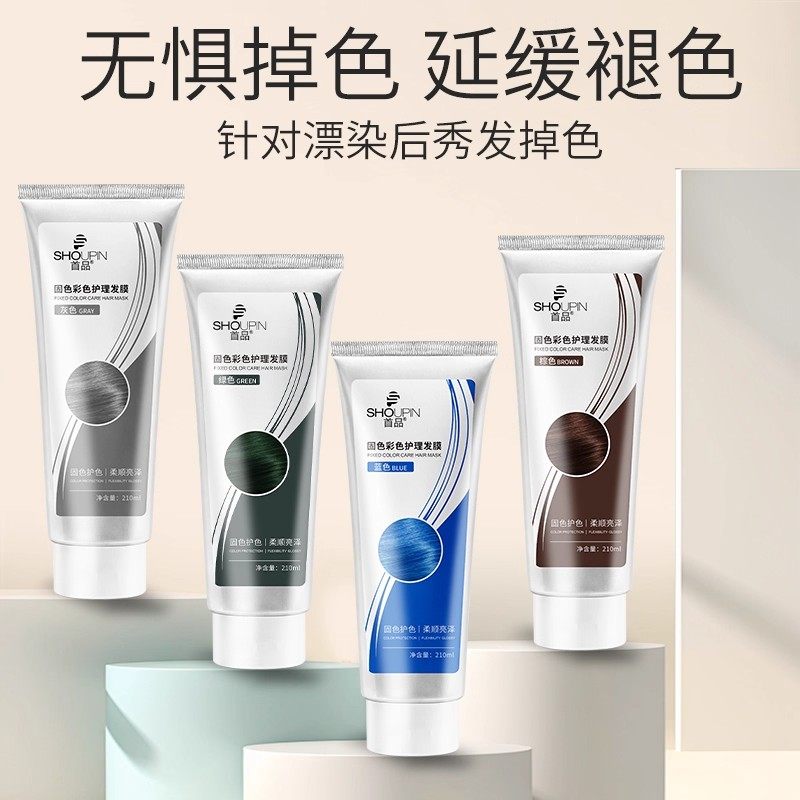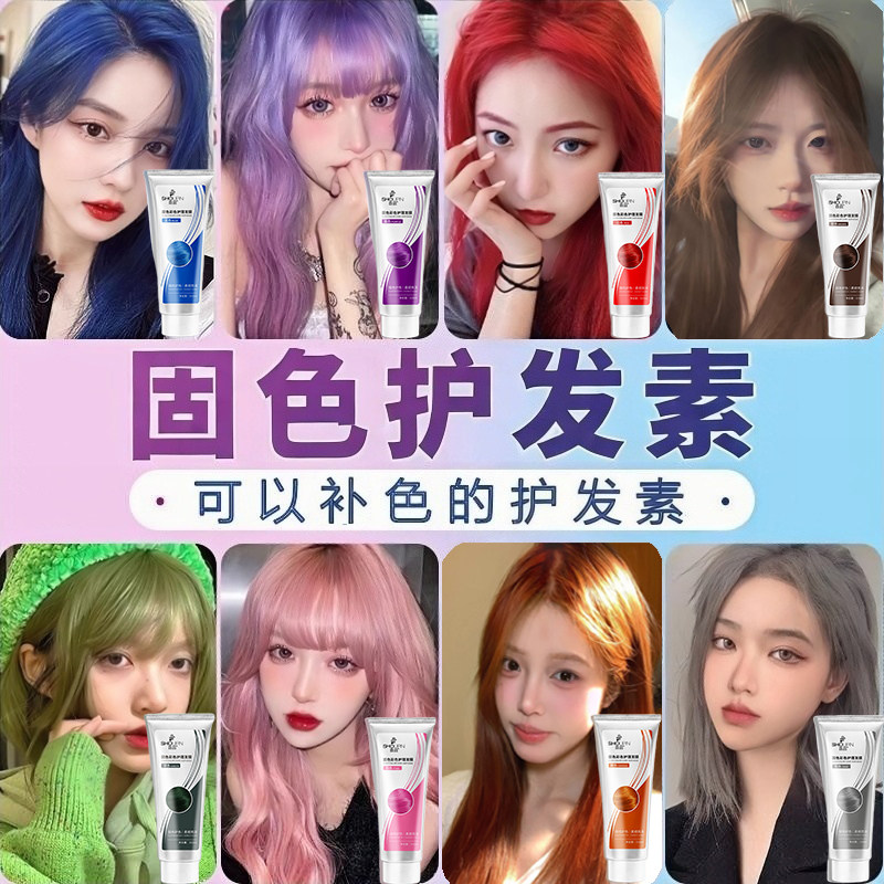 固色护发素发膜补色护色洗发水灰色红色粉色蓝色去黄锁色洗护染发