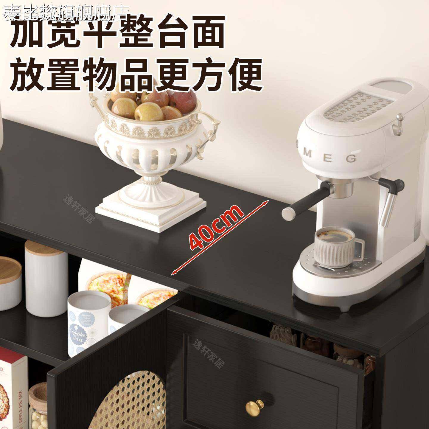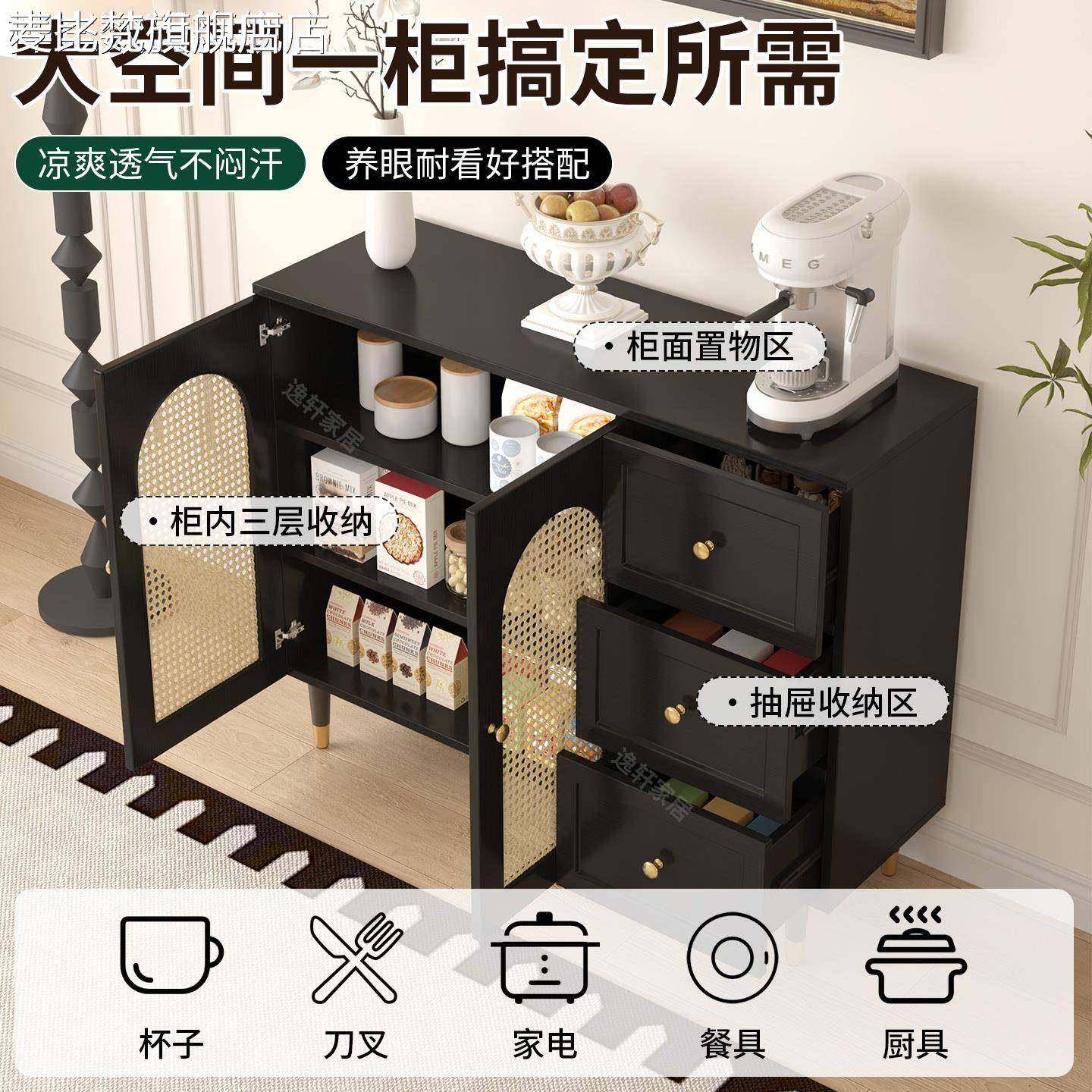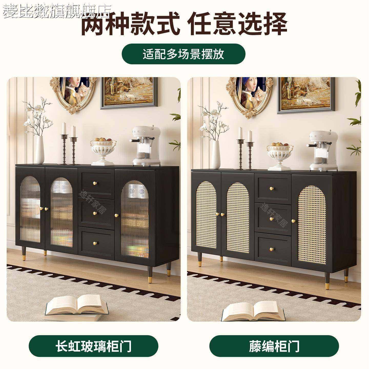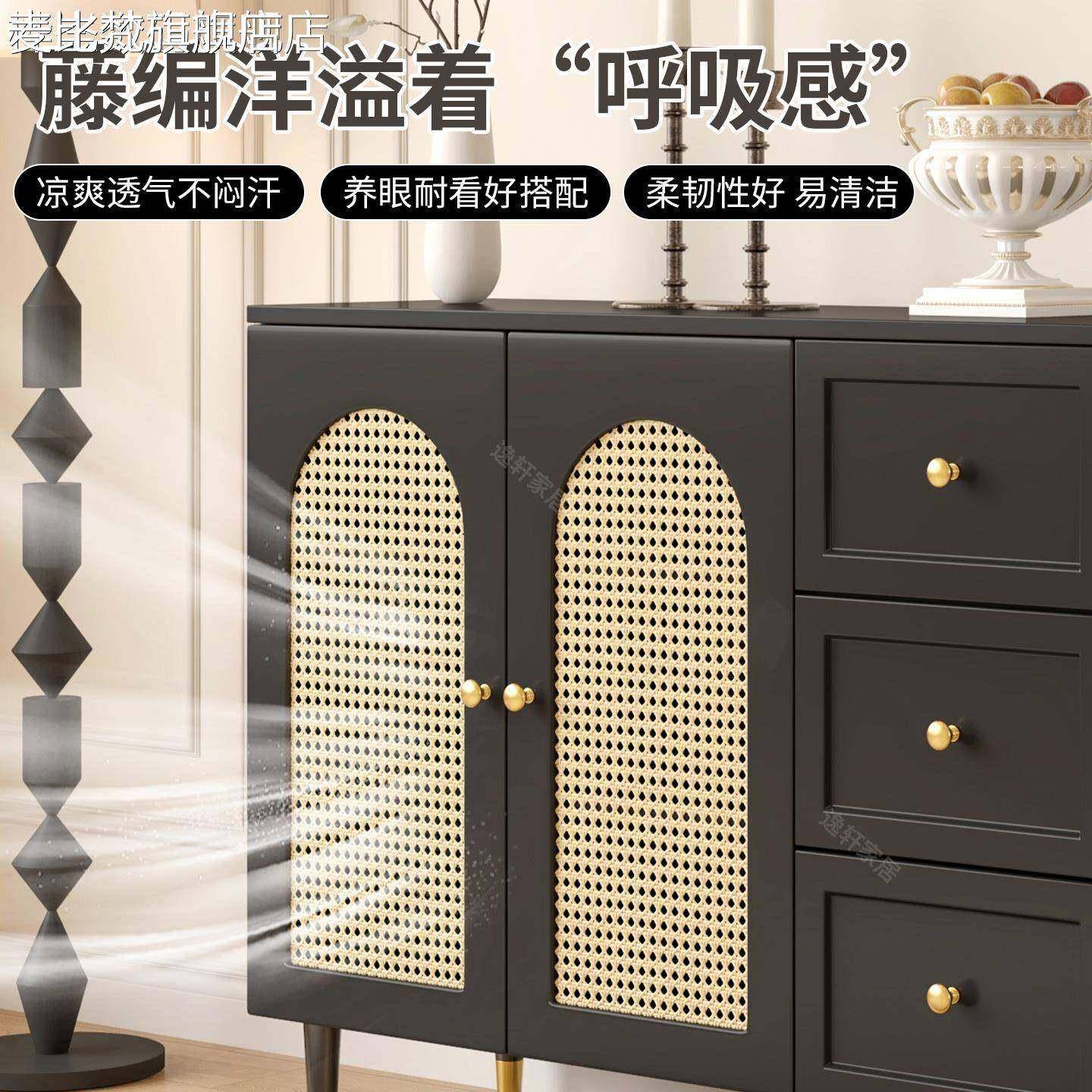 麦比梵复古法式餐边柜简约藤编储物柜子家用餐厅茶水柜厨房收纳橱柜边柜床笠拉车