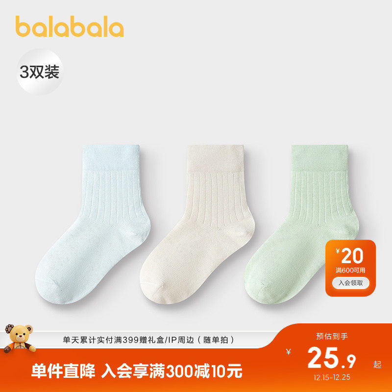 【商场同款】巴拉巴拉女童袜子春秋装儿童中筒婴童袜不勒脚三双装