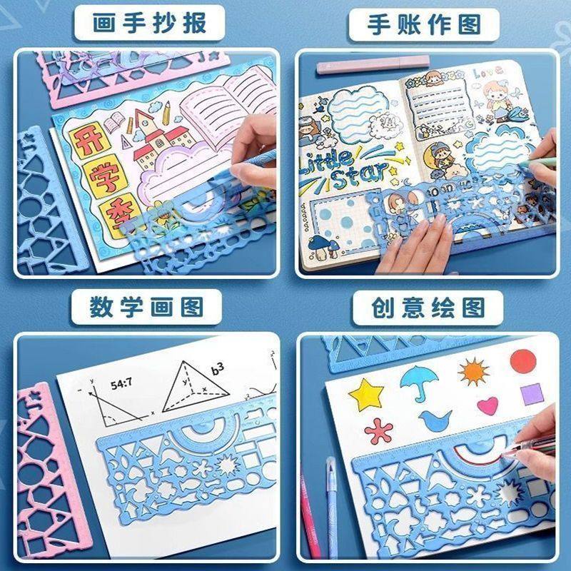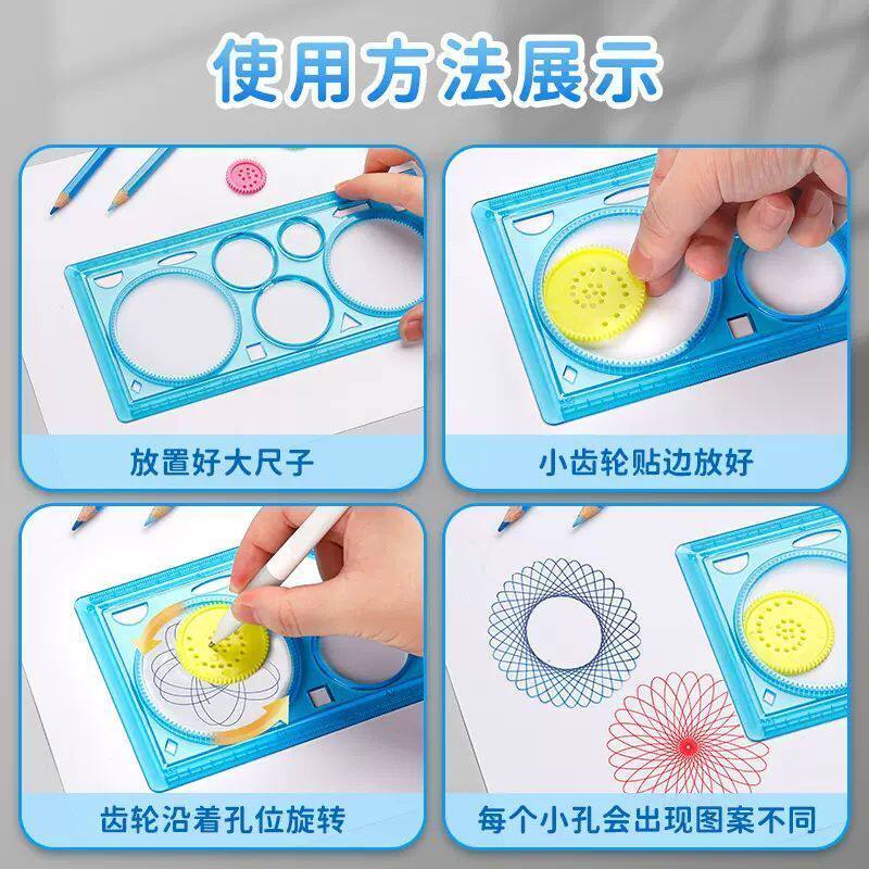 万花尺百变绘图尺子小学生益智玩具创意绘画模板套装儿童刮刮画数学绘画直尺软画图三角能镂空工具神器文具本