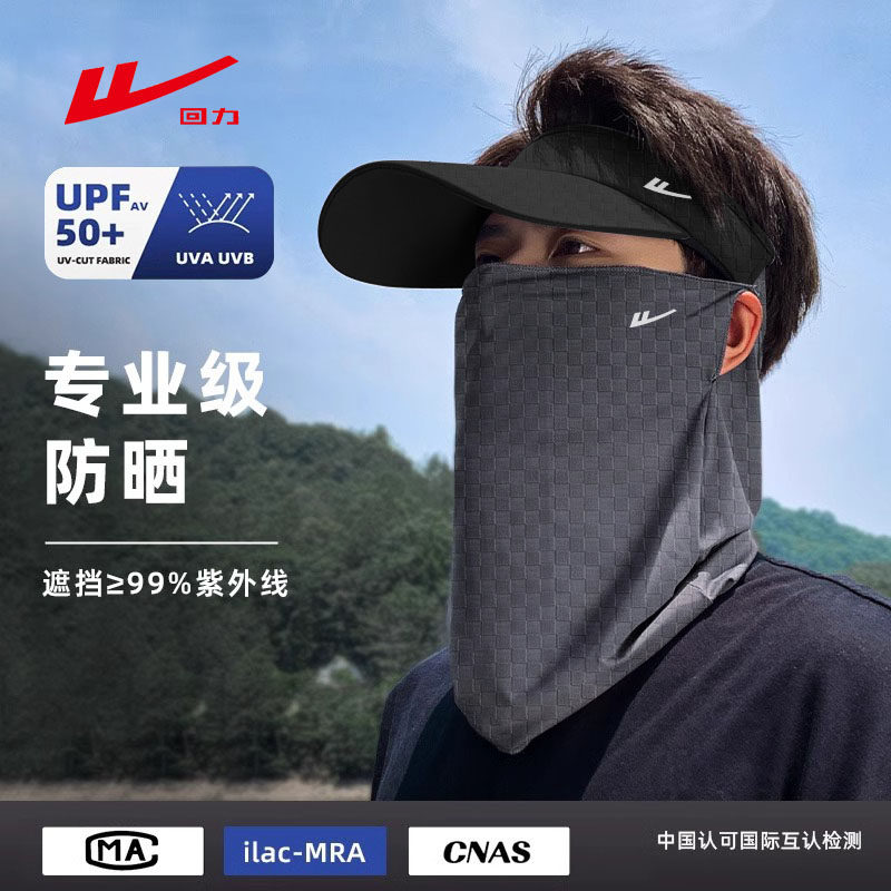 回力冰丝透气空顶格子帽男夏户外骑行遮阳防紫外线防晒登山帽面罩