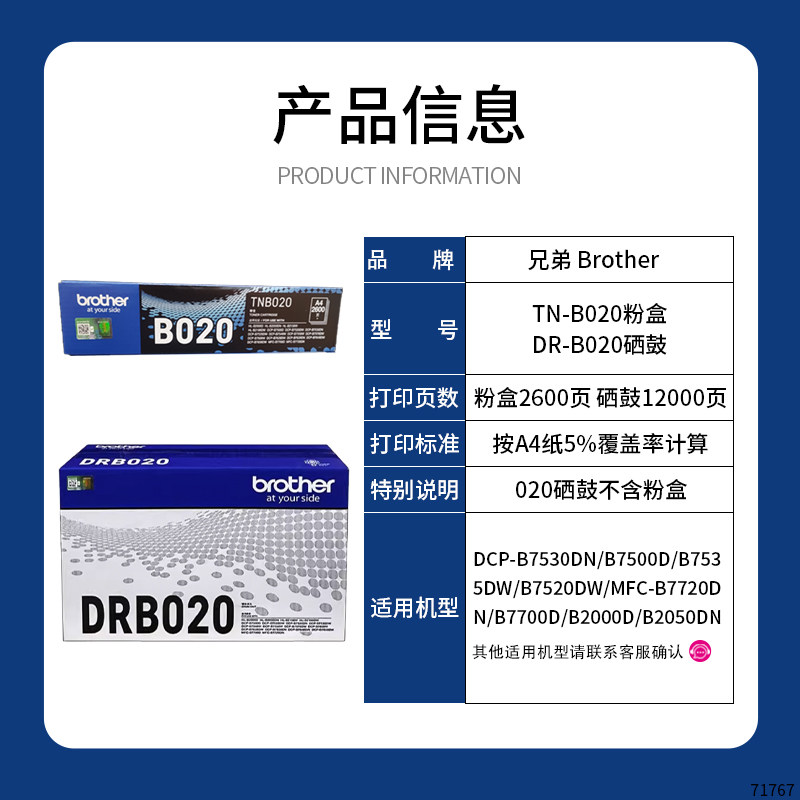 原装兄弟TN-B020粉盒墨粉鼓架7720 7700 DCP-7530 7500打印机硒鼓