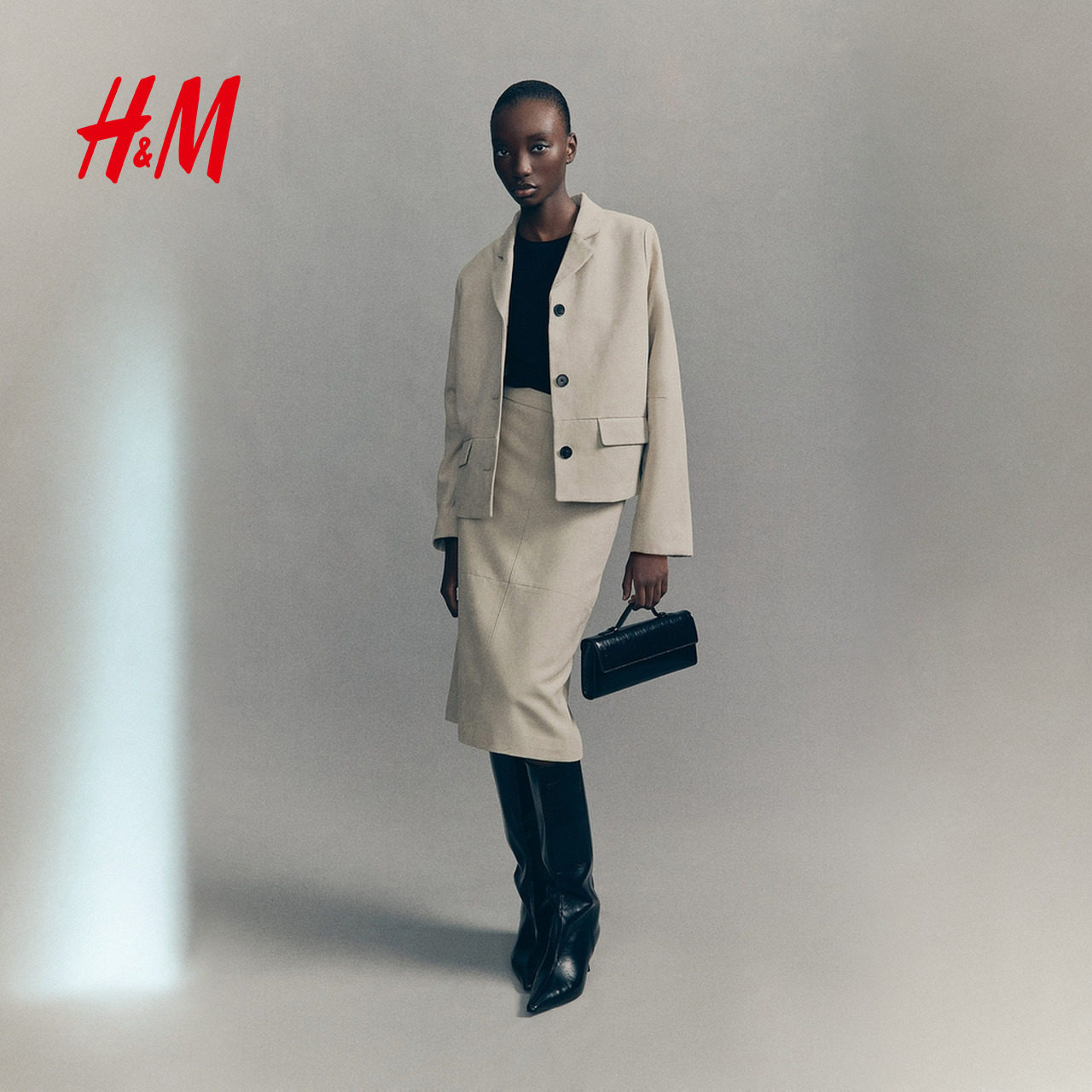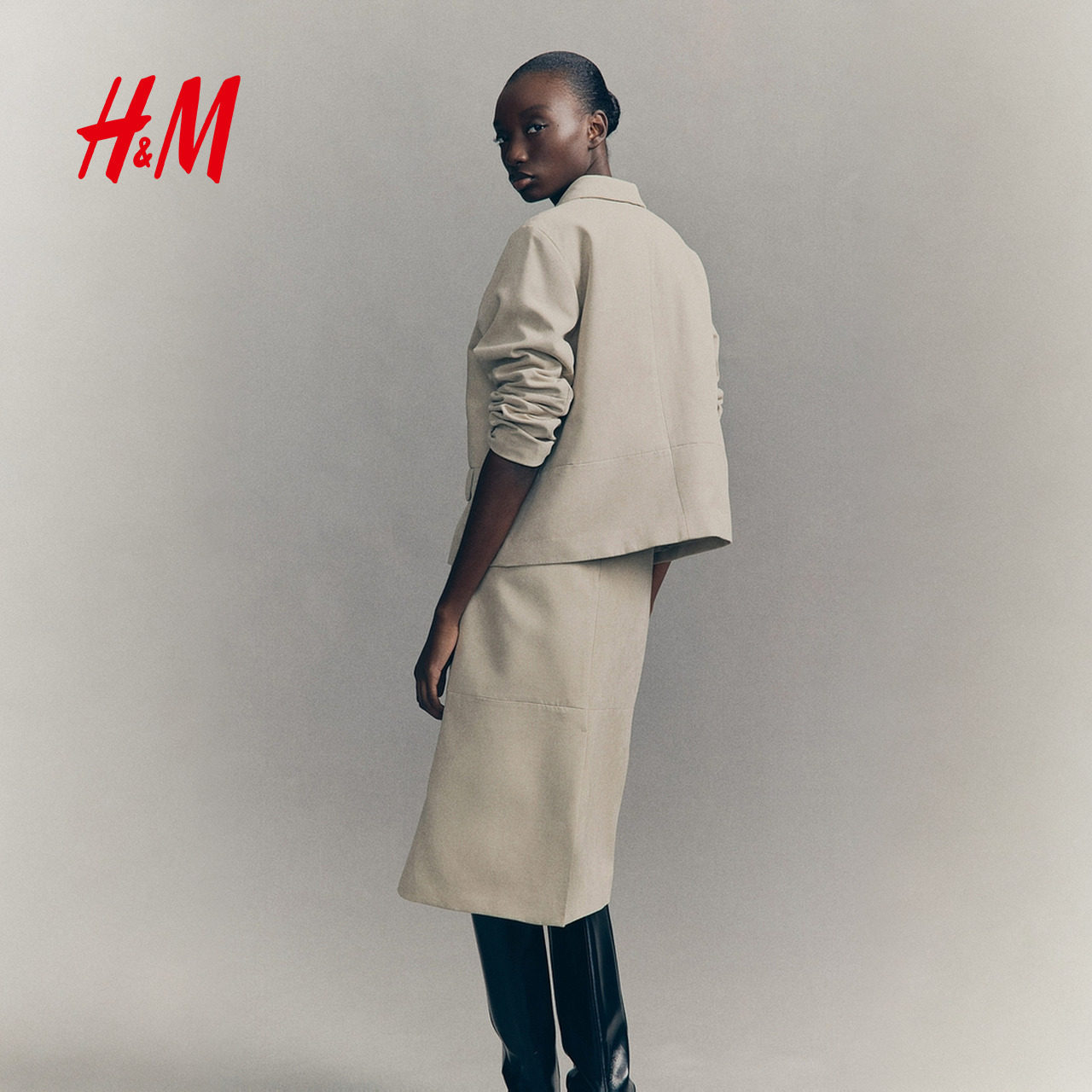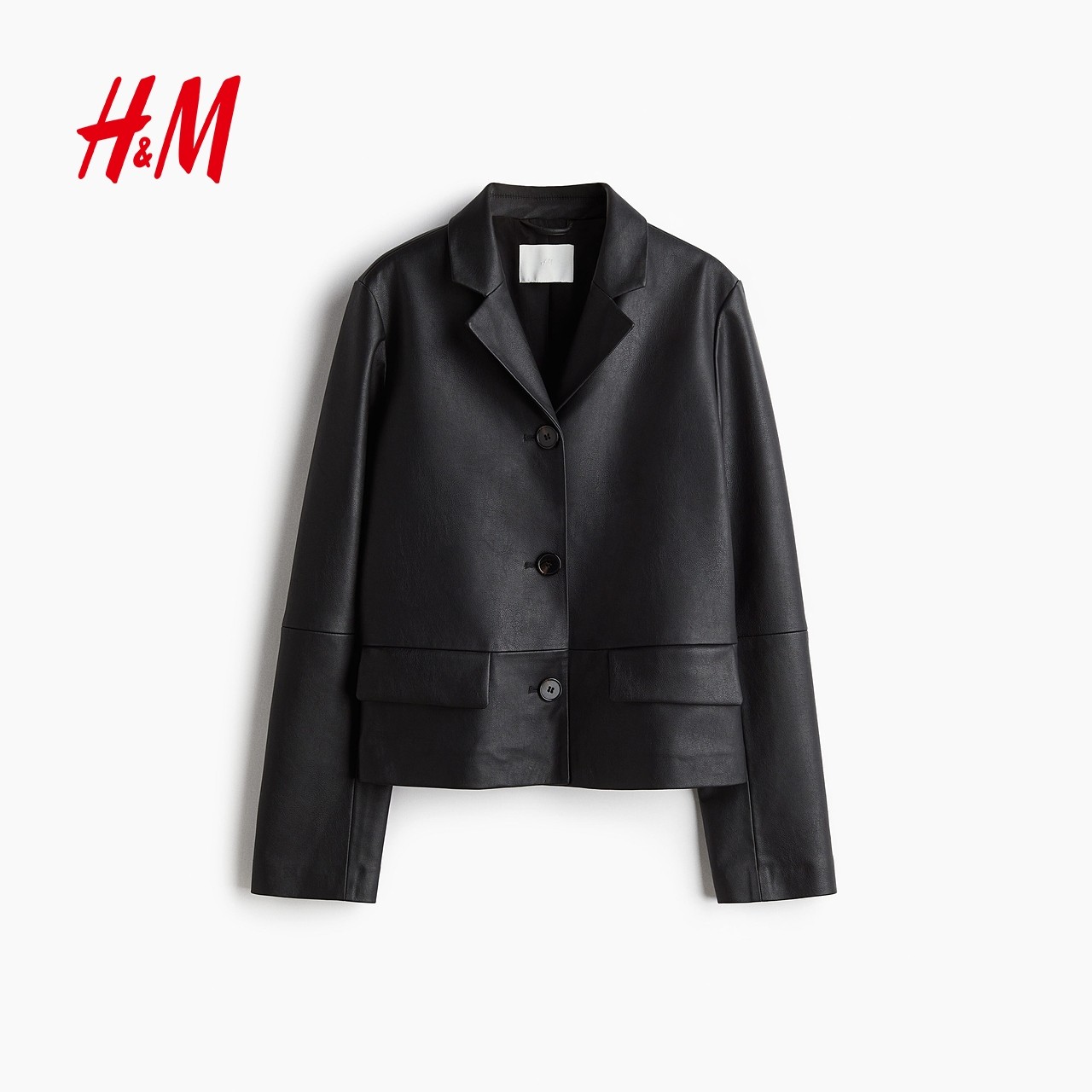 HM女装西装2025冬季新款单排扣机能风平驳领V领单排扣外套1297466