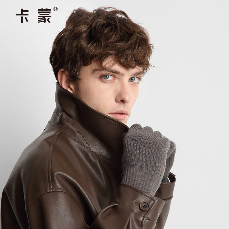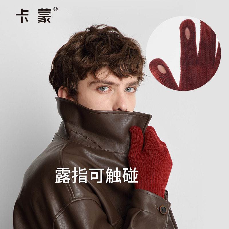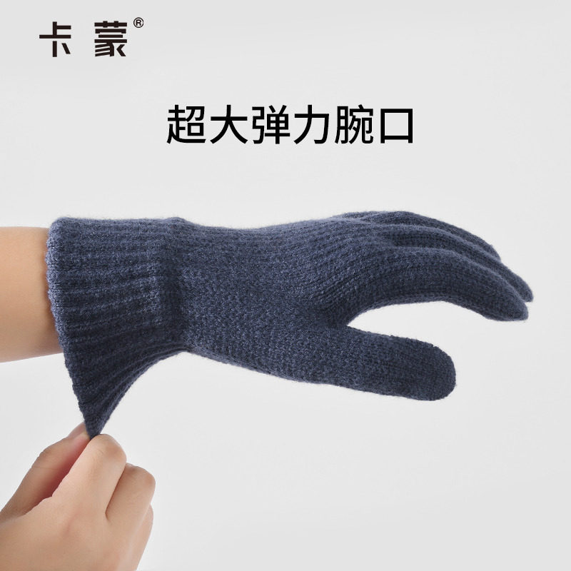 卡蒙男士分指可触屏手套冬季户外保暖跑步健身毛线手套开车防滑