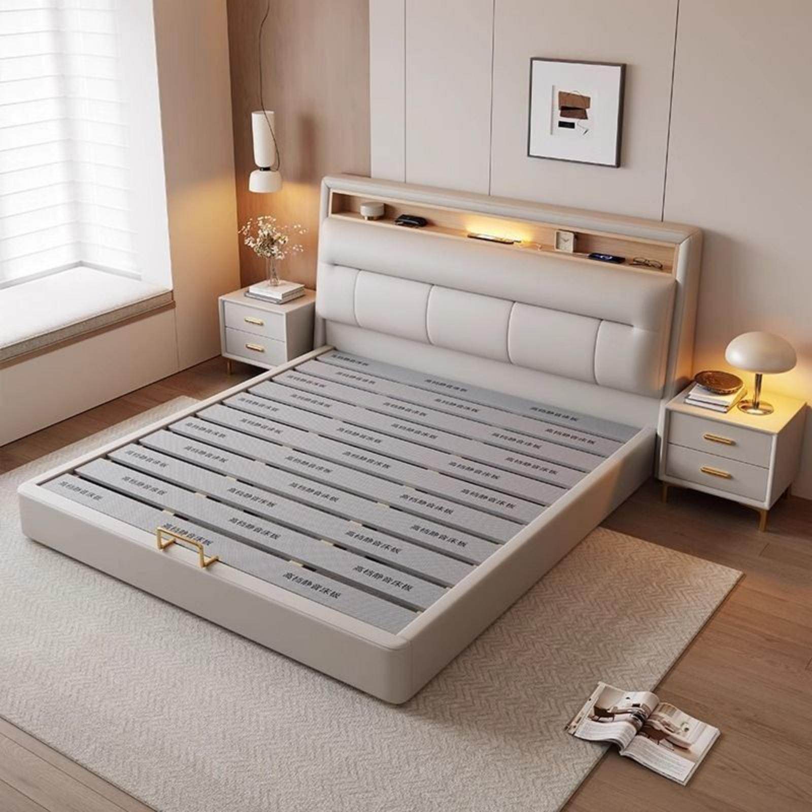 雅兰悬浮床奶油风现代简约轻奢1.8m主卧大床科技皮实木双人床极光