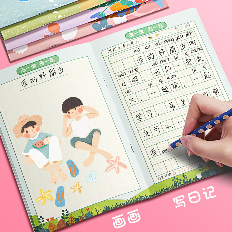 绘画日记二年级小学生卡通拼音田字格画图写话少儿周记本幼儿园阅读儿童写日记的本子一三四年级涂画a5b5可爱