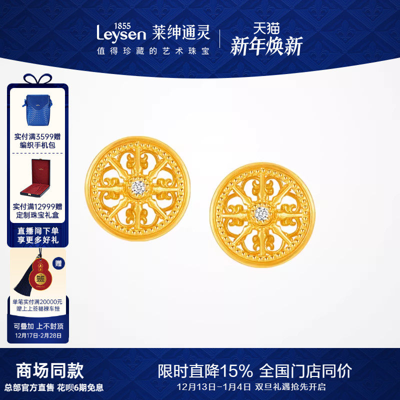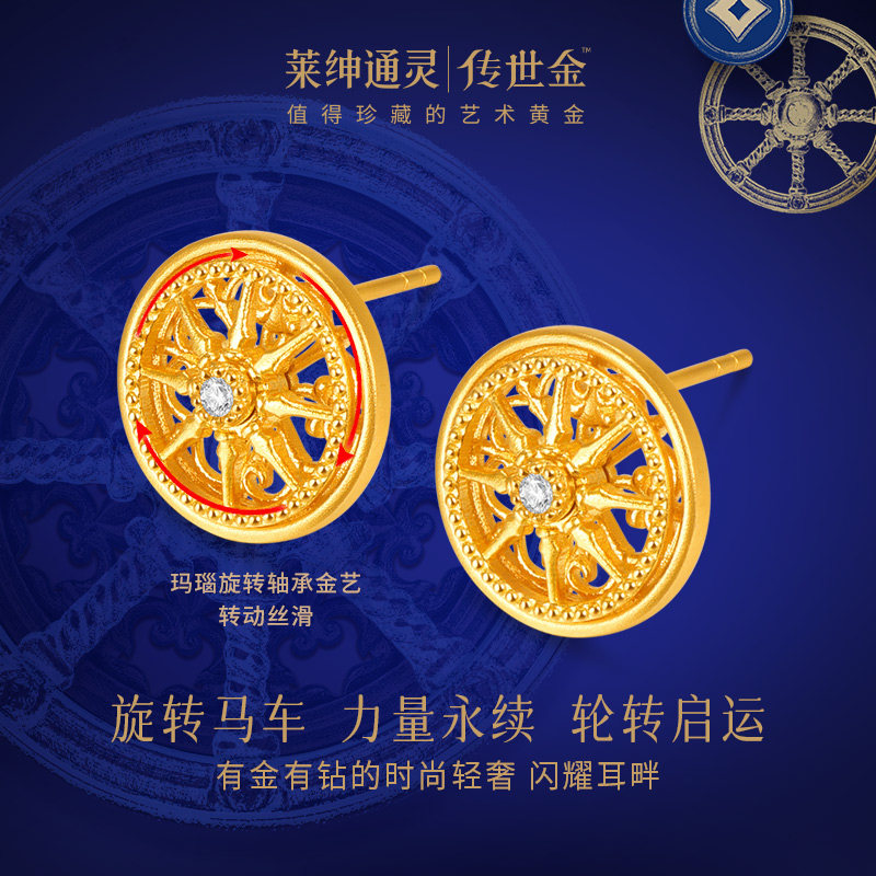 莱绅通灵艺术馆 幸运黄金马车 八宝罗盘圆花窗 足金999钻石耳钉
