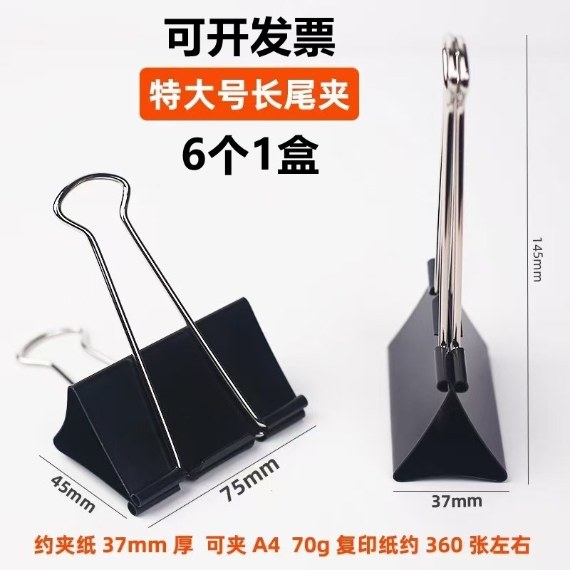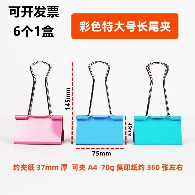 加大60mm黑色长尾夹特大75mm燕尾夹彩色长尾夹办公用品画板专用夹财务票夹大号画板夹试卷夹高中生资料收纳夹