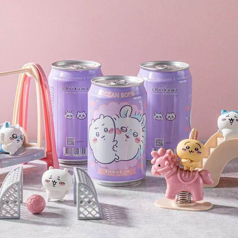 台湾OCEAN BOMB白葡萄蜜桃气泡水chiikawa联名饮料吉伊卡哇乌萨奇